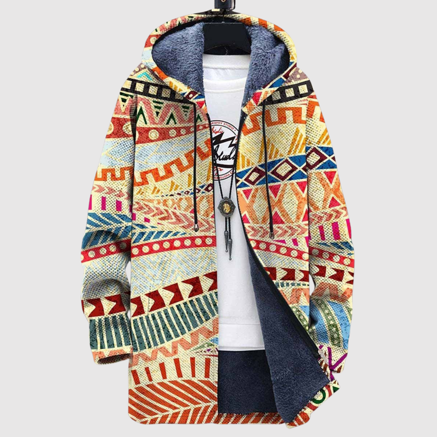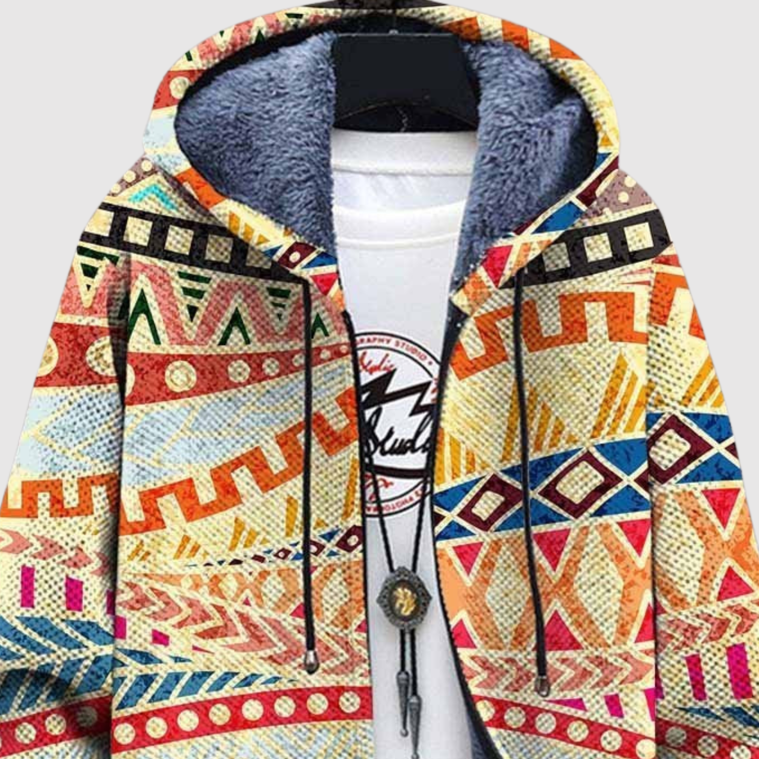 Този суичър комбинира традиционни етнически мотиви с ярки цветове в перфектен баланс между комфорт и креативност. Меката подплата го прави идеален за есента и зимата – изявление с душа.