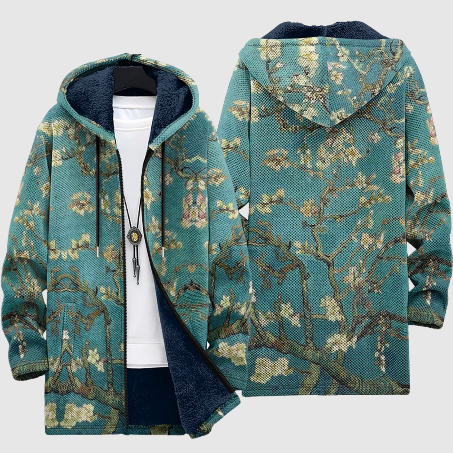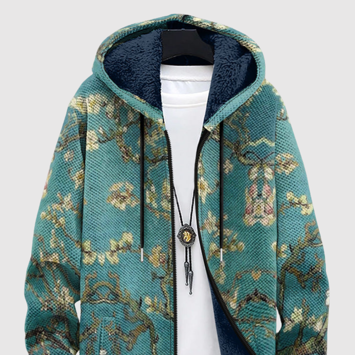 Този суичър е украсен с деликатен цветен принт в спокойни зелени и бежови тонове. Меката текстура и топлата подплата го правят идеален за ежедневна употреба, докато винтидж вдъхновеното му излъчване придава елегантен и хармоничен вид.
