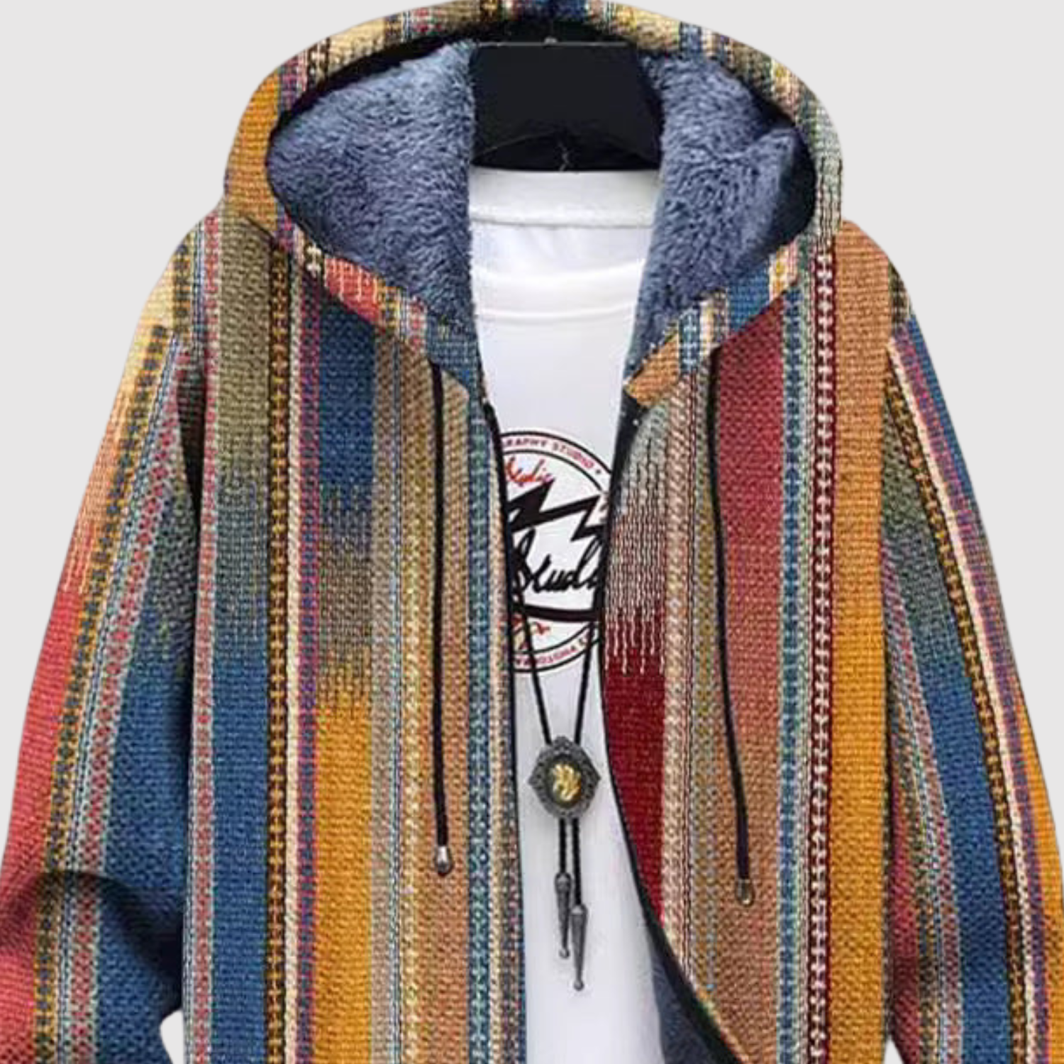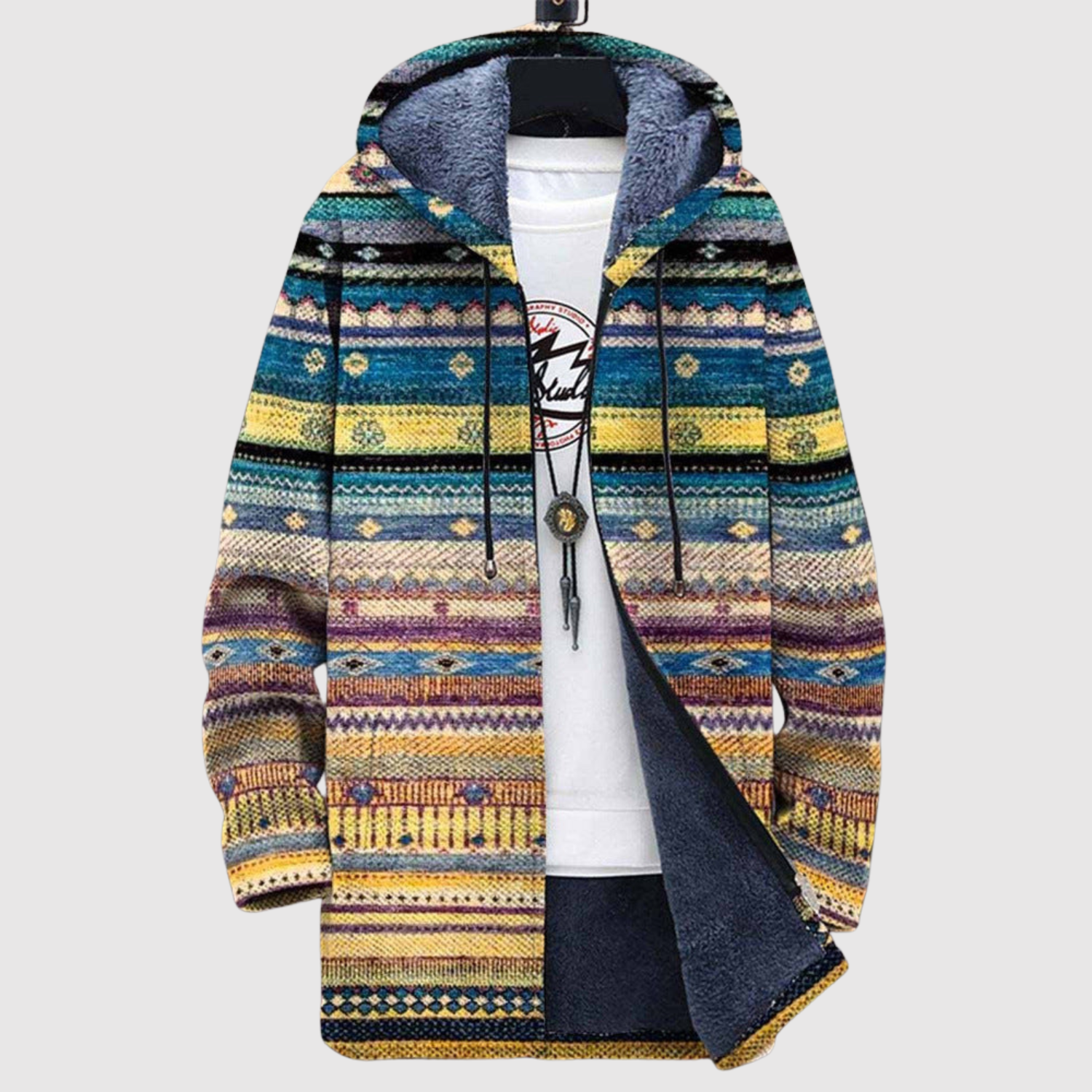 Тази худи съчетава етнически вдъхновени мотиви с топли тонове на жълто и оранжево. Тя е мека, удобна и изпълнена с индивидуалност – идеална за есенни дни или уютни моменти у дома.