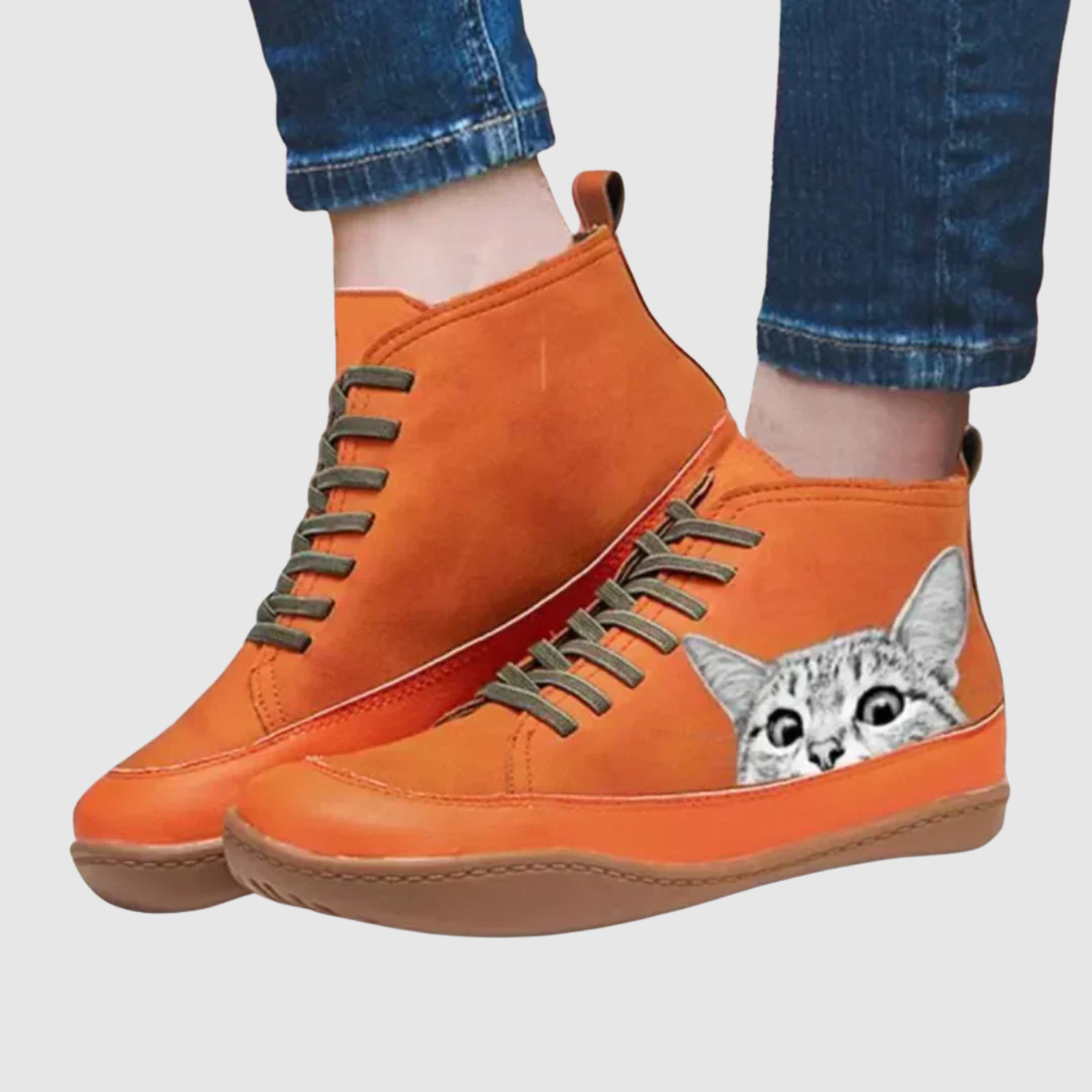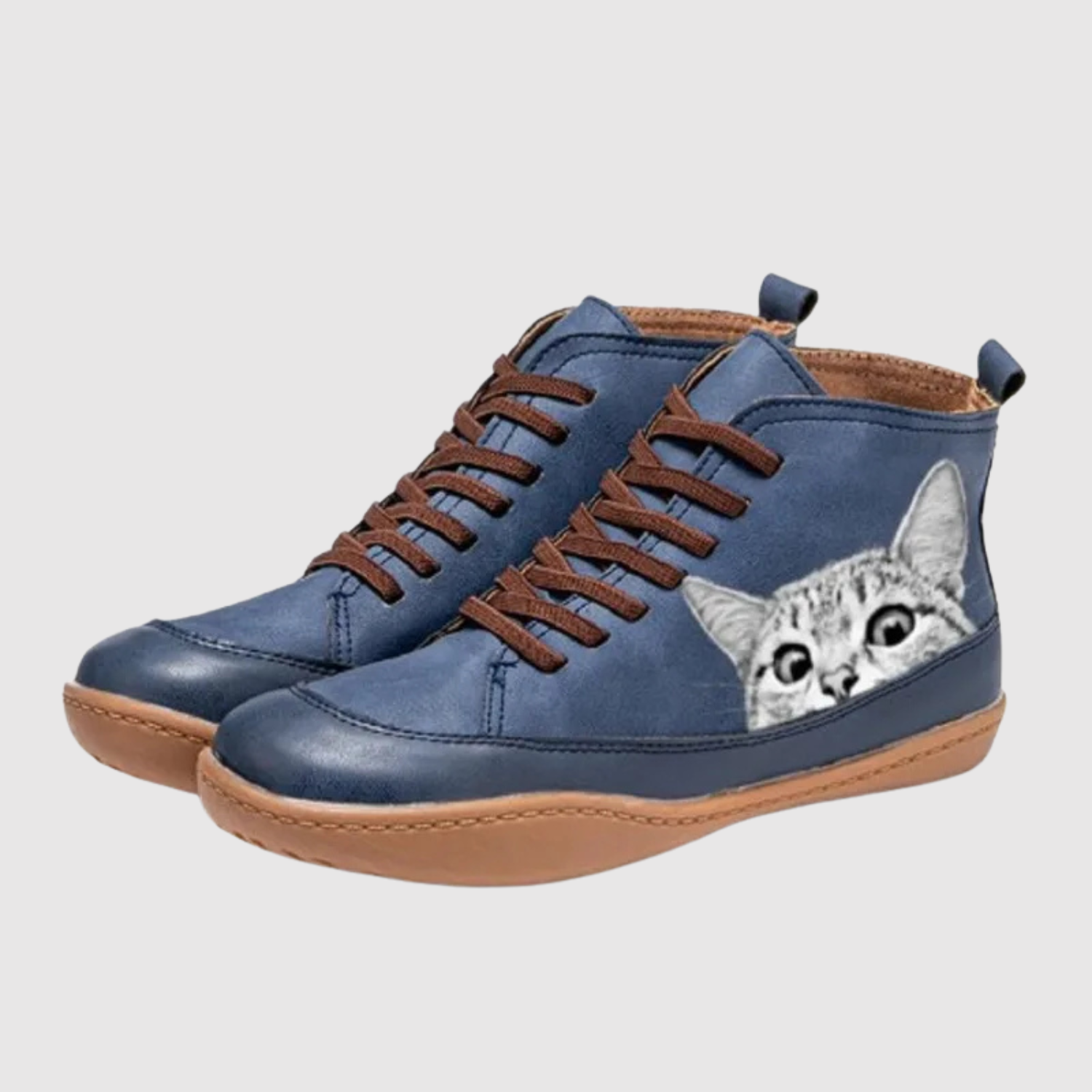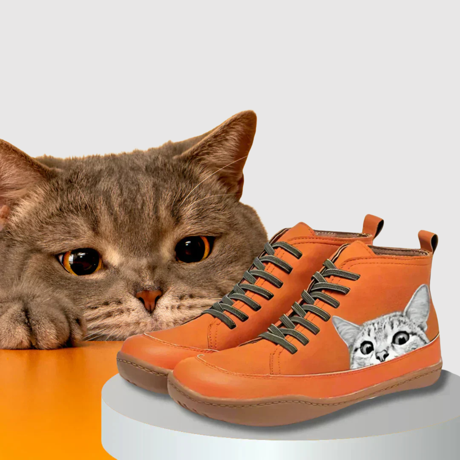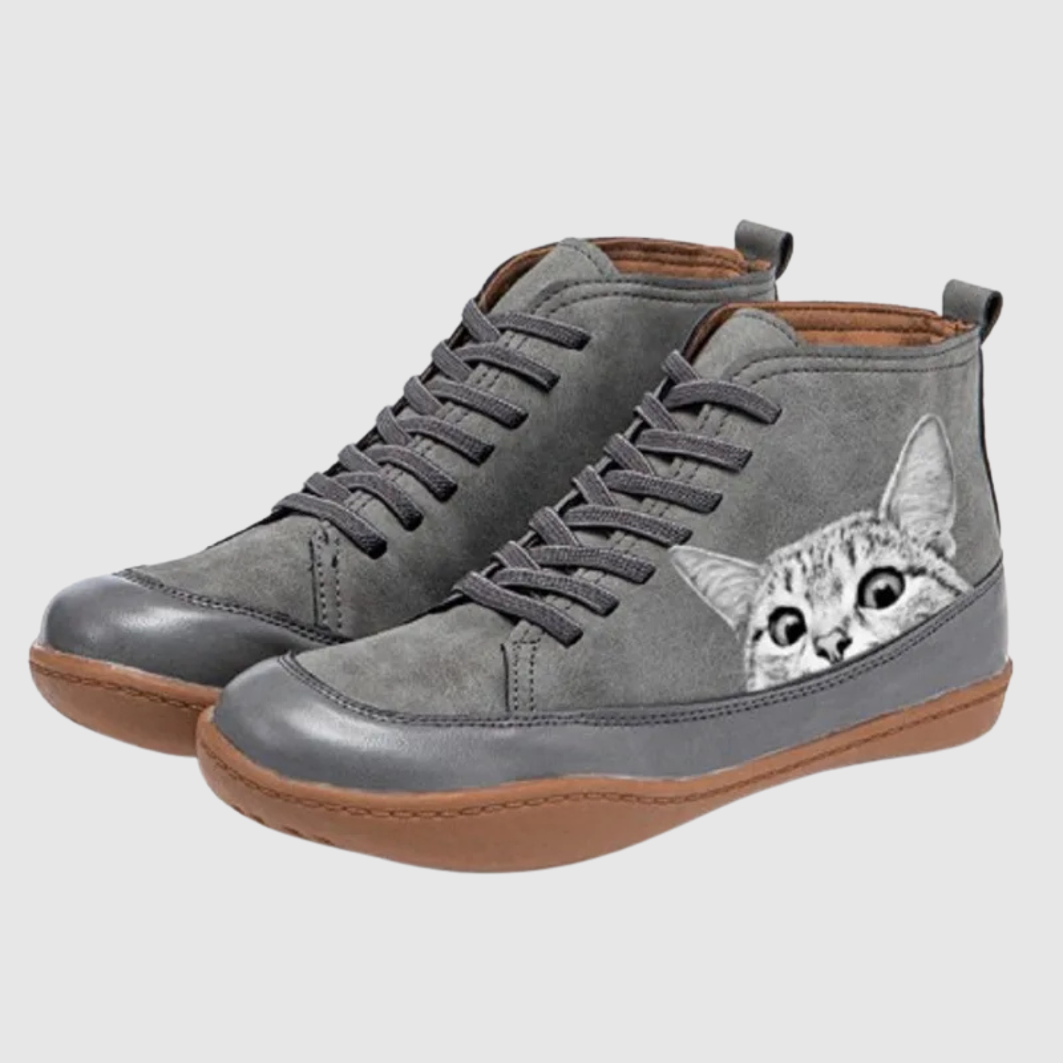 Тези удобни ботуши от мек изкуствена кожа комбинират забавен котешки мотив с ежедневен комфорт. Идеални за свободното време и ежедневна употреба – привлекателен акцент за всеки любител на животни.