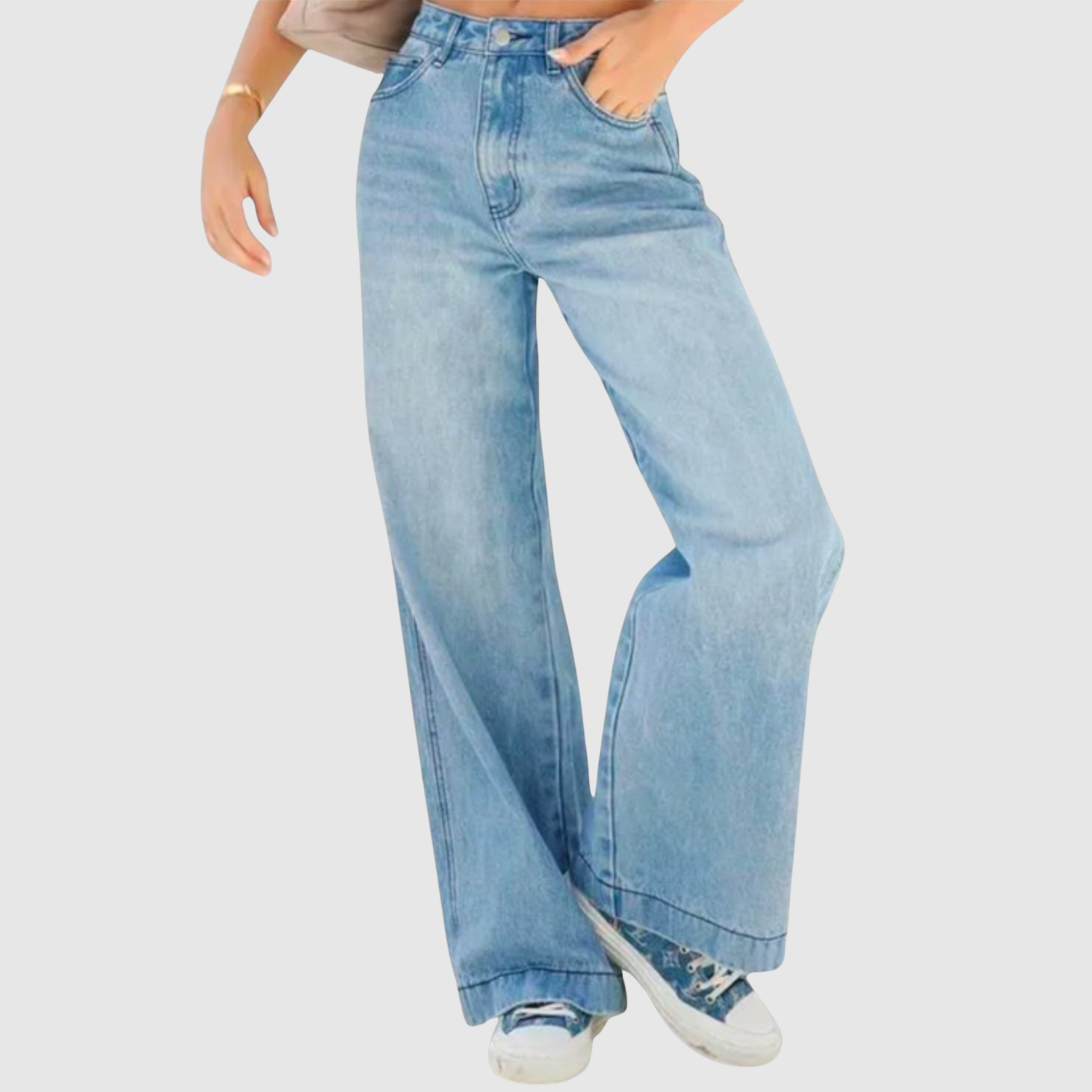 Придайте на гардероба си модерен и неформален вид с тези дънки с широка кройка. Техният свободен силует и удобен материал ги правят идеалният избор за градски вид с индивидуалност. Перфектни за комбиниране със спортни обувки или токчета – тези панталони ще станат вашата нова универсална основна част.