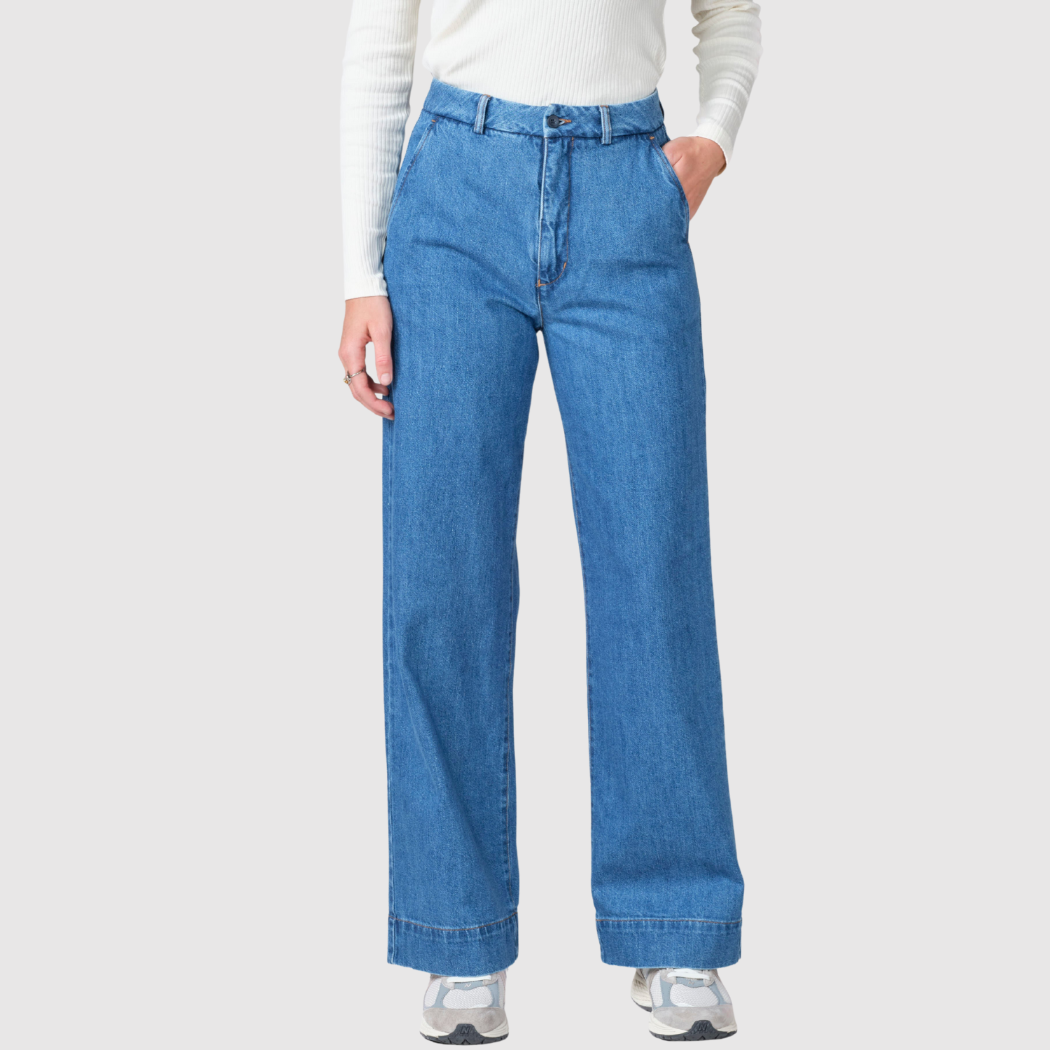 Тези дънкови панталони с висока талия предлагат елегантен, удължен вид. Светлосиньото stonewash добавя свеж и модерен акцент, докато широкият модел осигурява комфорт през целия ден. Основна част от всеки гардероб.
