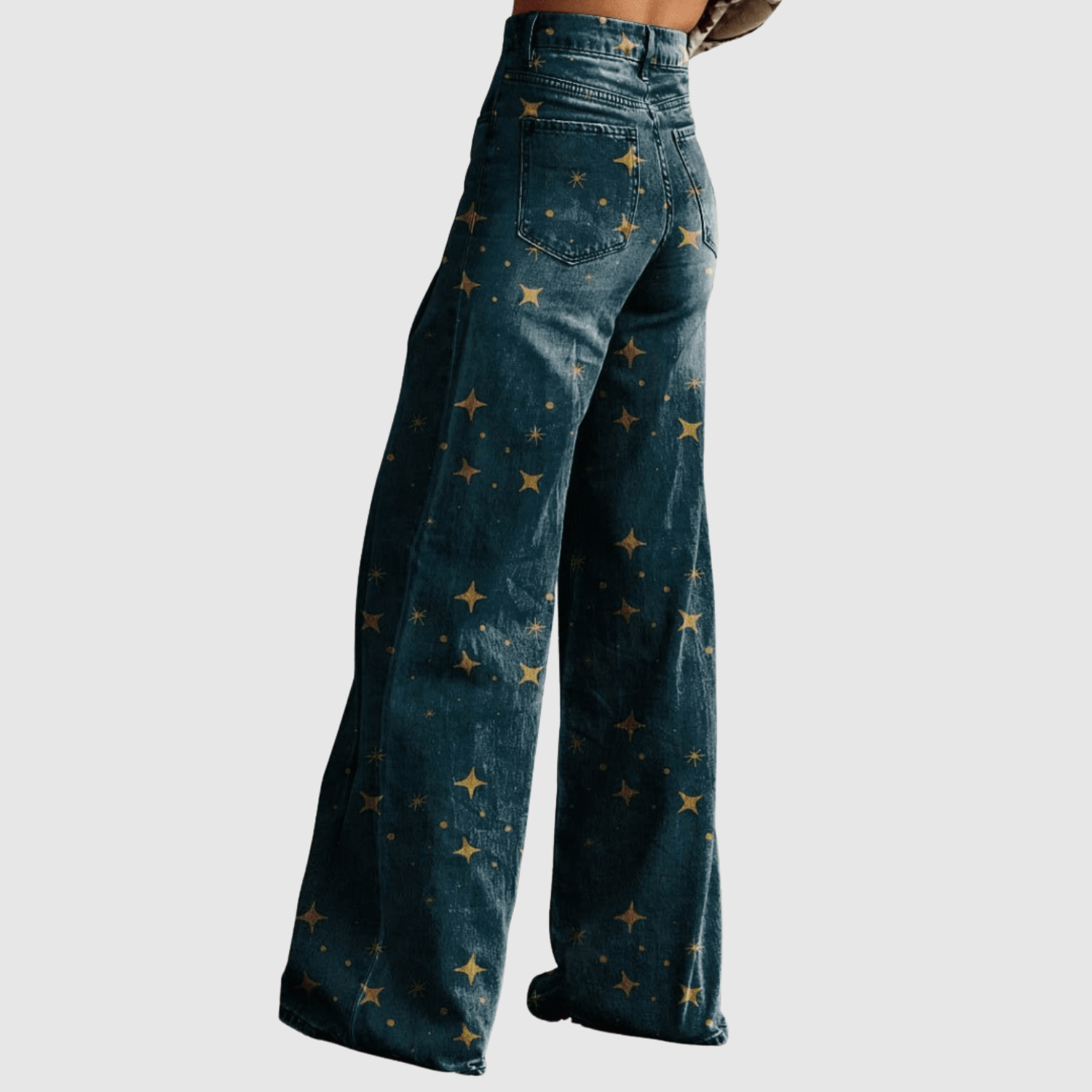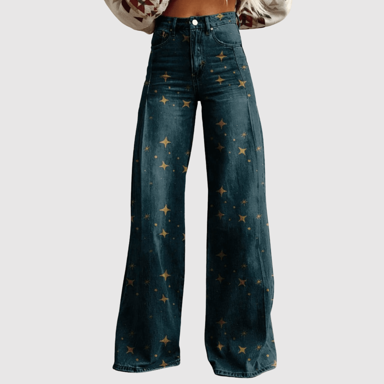 Тези разкроени дънки комбинират класически деним с уникални принтове като цветя и звезди. Перфектни за теб, ако искаш да имаш впечатляващ аутфит с много индивидуалност.