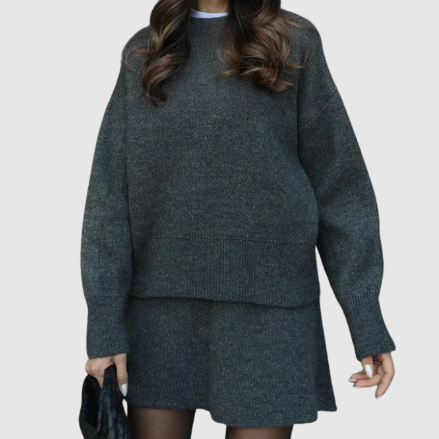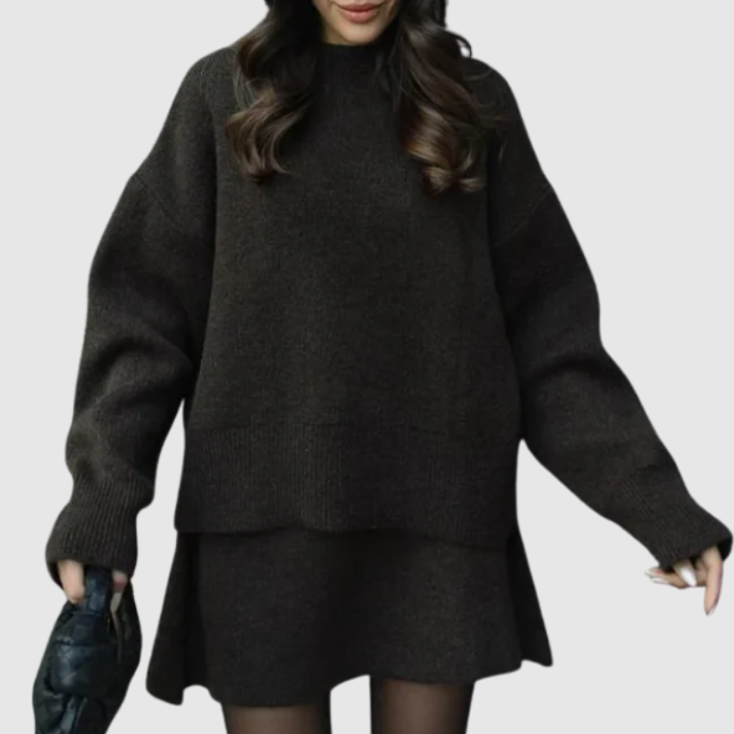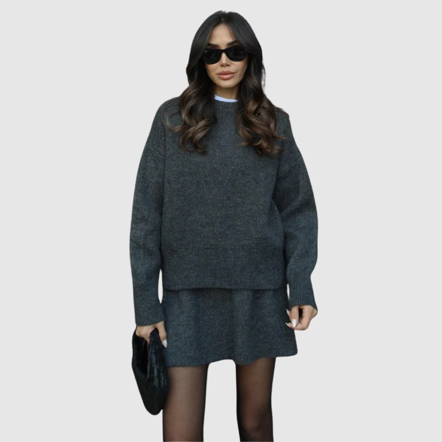 Този дамски комплект комбинира стилно яке с подходяща пола за пълен и елегантен вид. Перфектен за офиса, вечери или специални поводи. Комфорт и дизайн се срещат в безвременен тоалет, който подчертава вашия женствен стил.