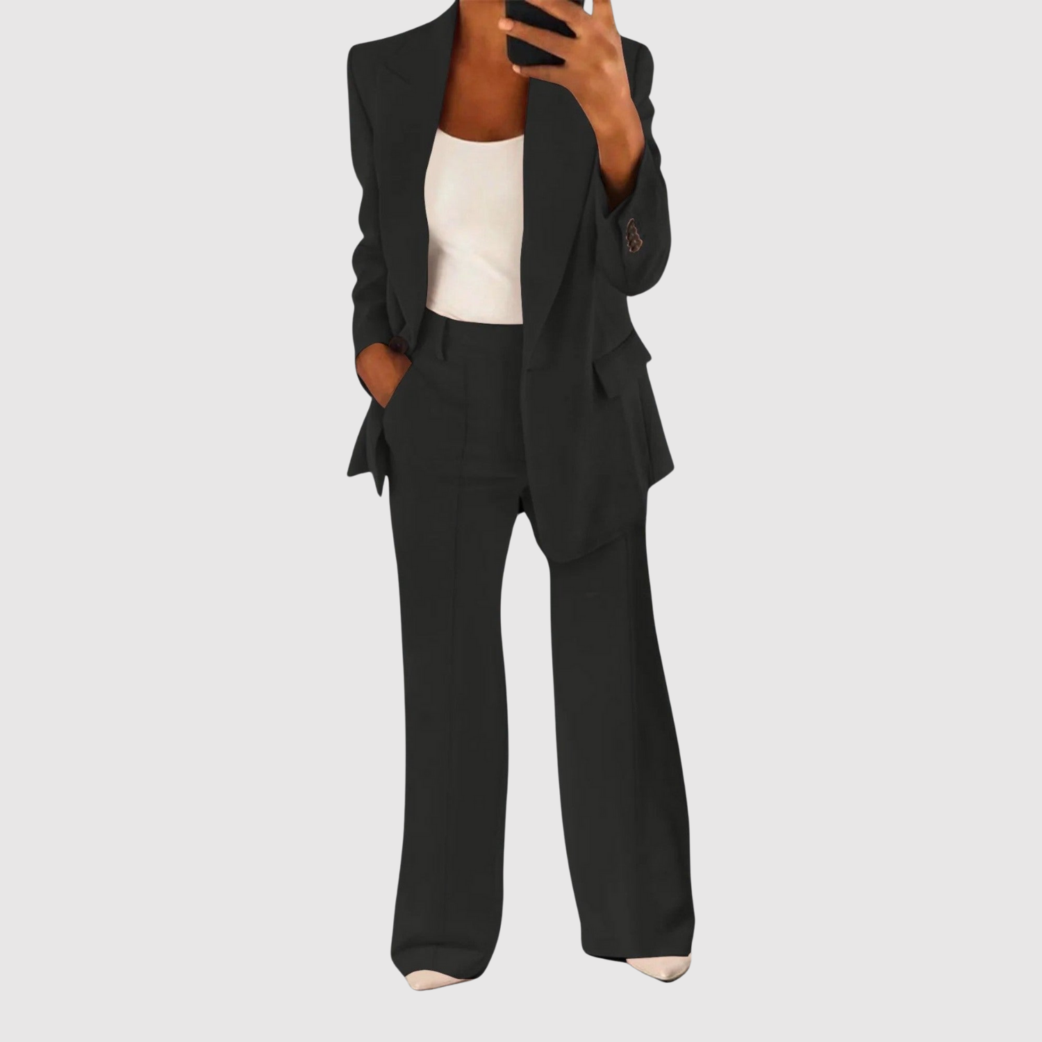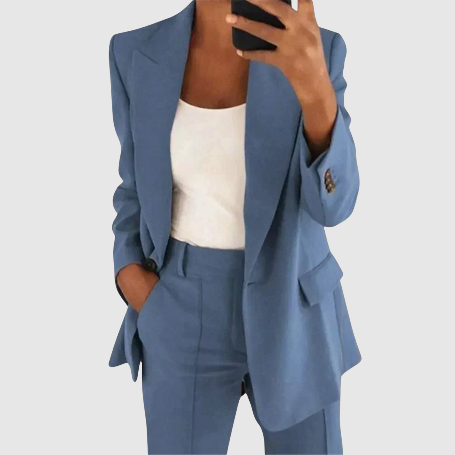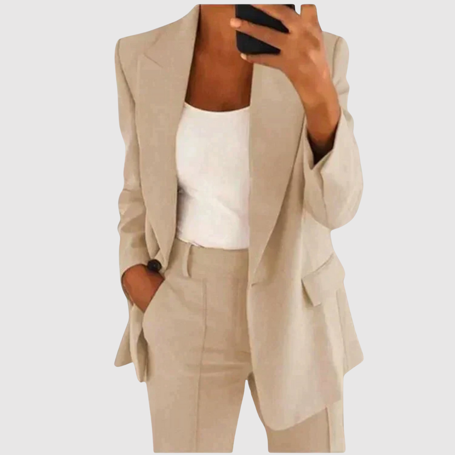 Този гащеризон комбинира класическо кроене с модерен акцент. С чистия си дизайн и удобна кройка е перфектен за офис, срещи или формални събития. Тъканта пада красиво и придава елегантен, стилен вид.