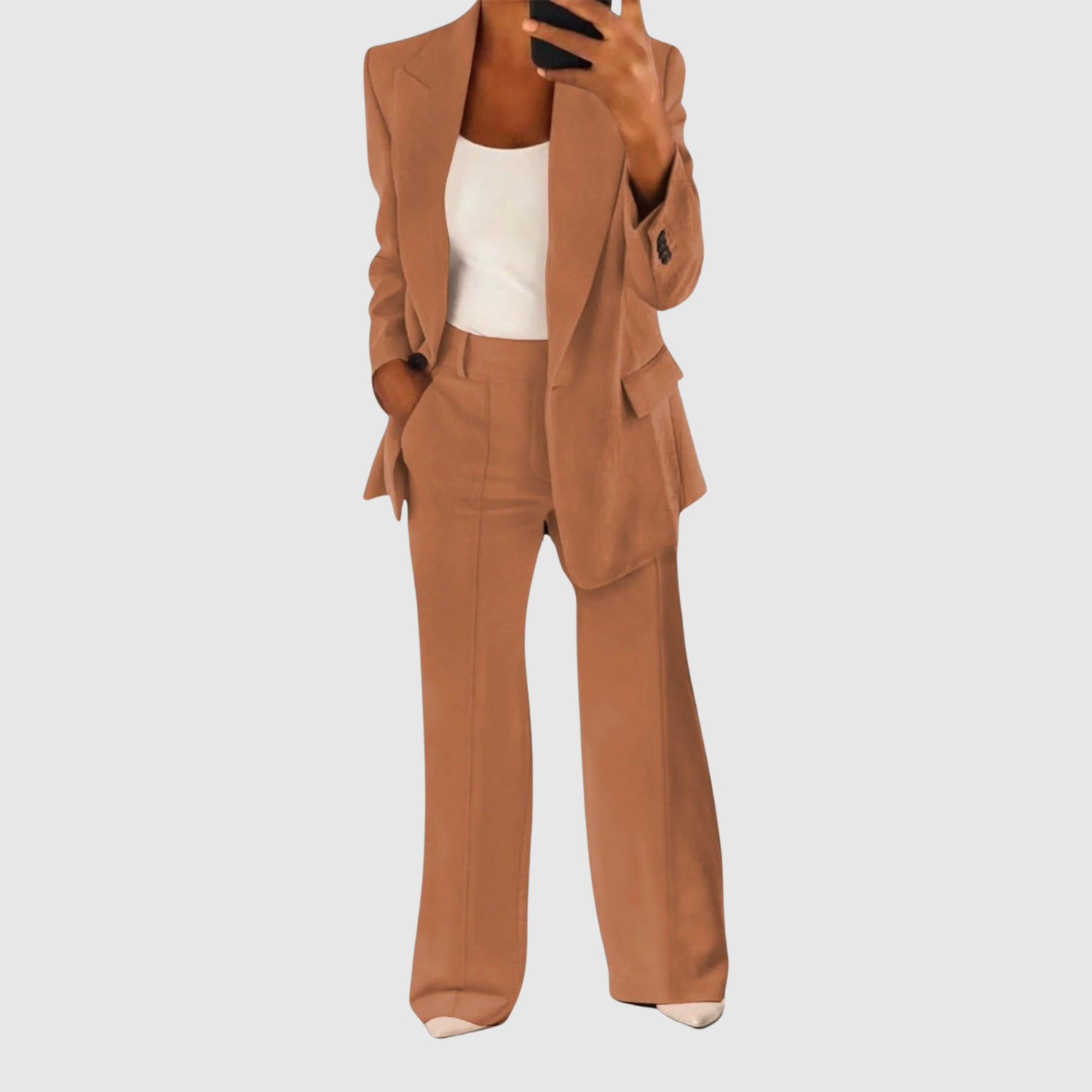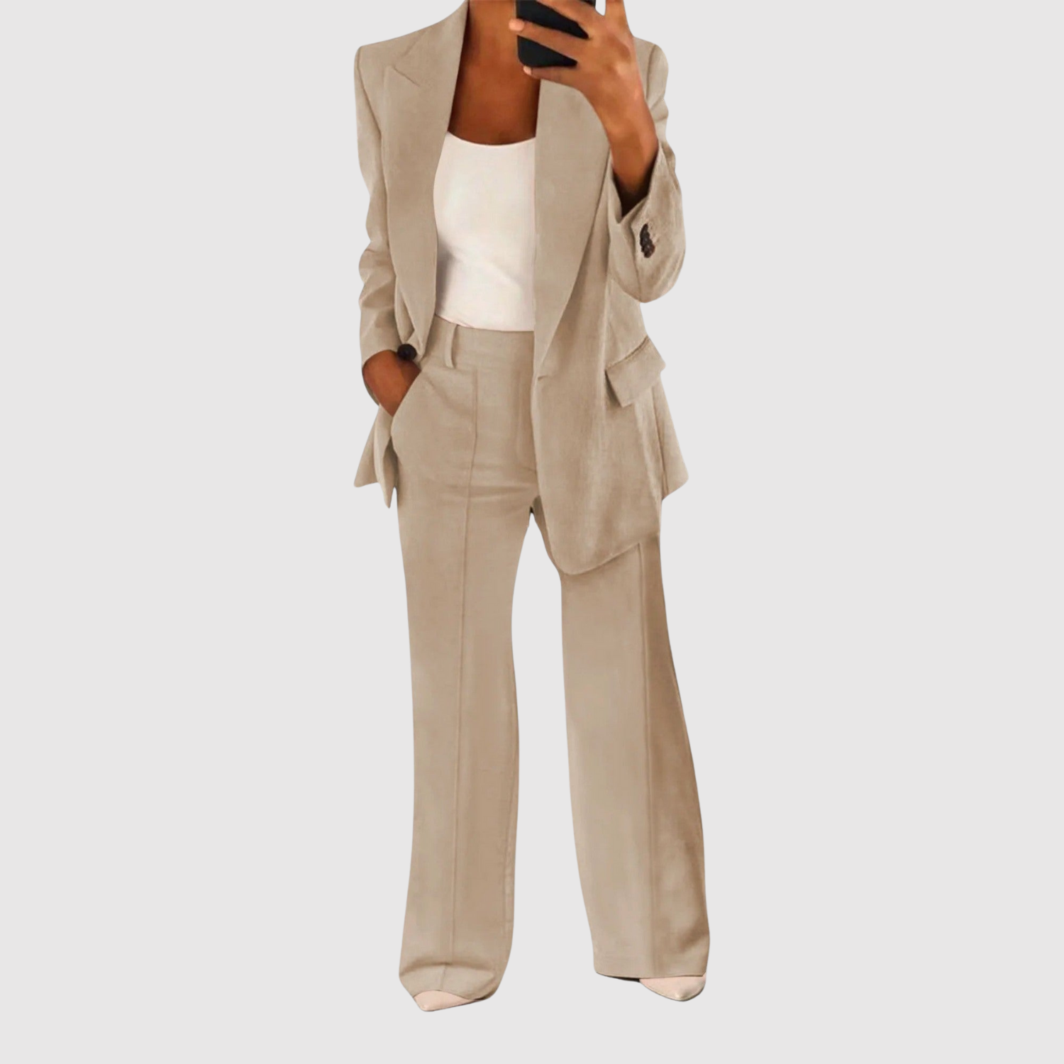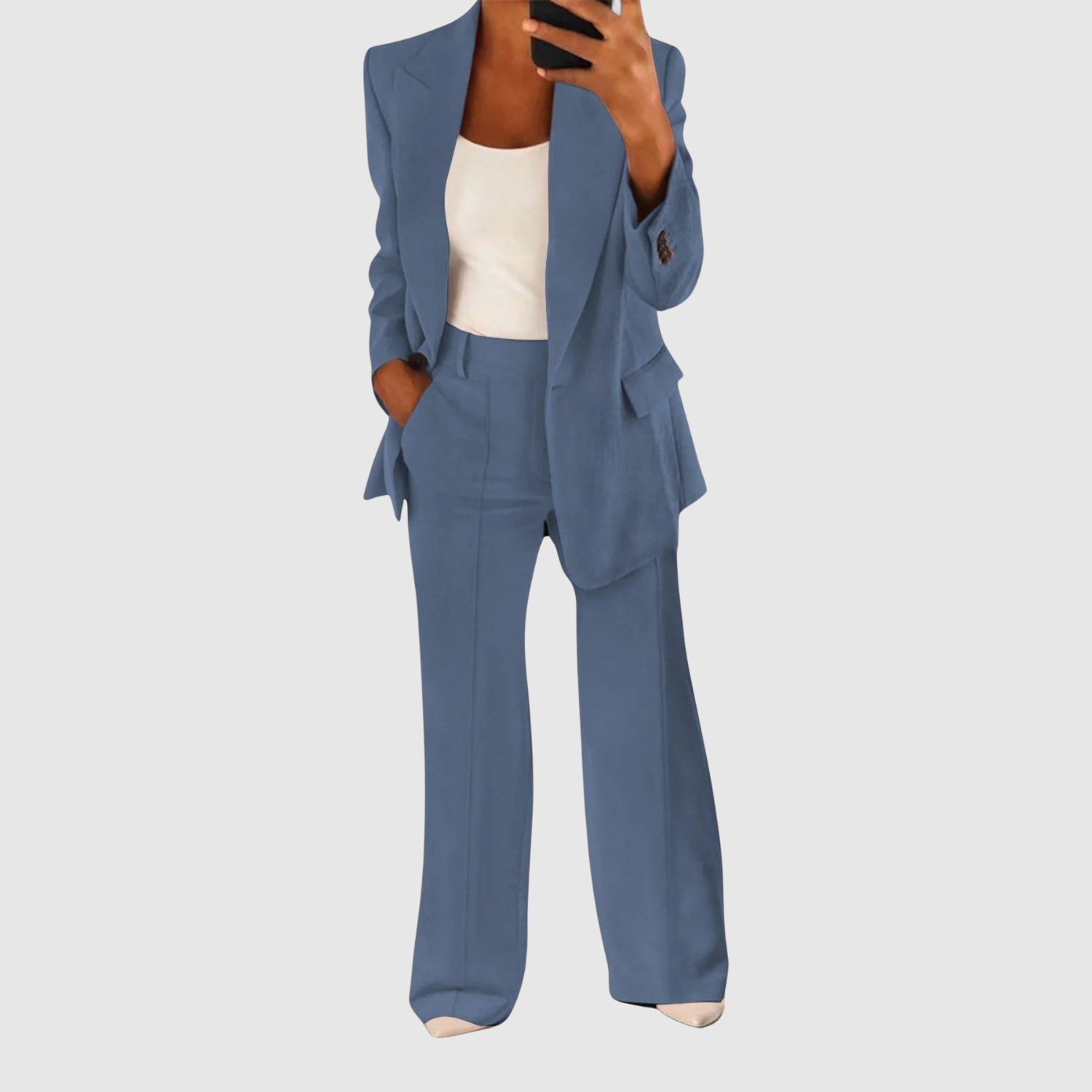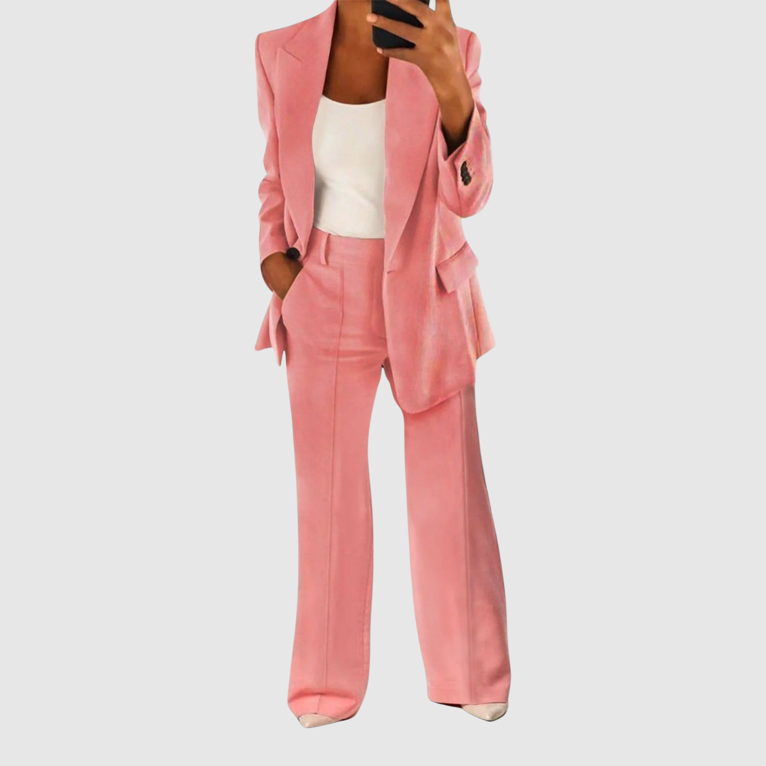 Този гащеризон комбинира класическо кроене с модерен акцент. С чистия си дизайн и удобна кройка е перфектен за офис, срещи или формални събития. Тъканта пада красиво и придава елегантен, стилен вид.