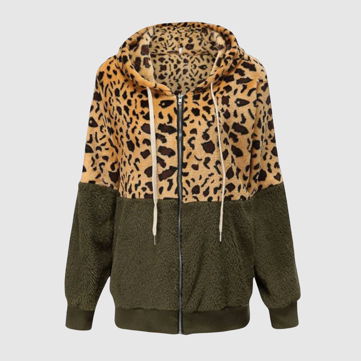 Тази худи съчетава спортния стил с модата: горната част с леопардов мотив придава смело излъчване, докато мекото флийс отдолу осигурява топлина и комфорт. Перфектна за ежедневна употреба, небрежни визии и разходки в хладни дни.