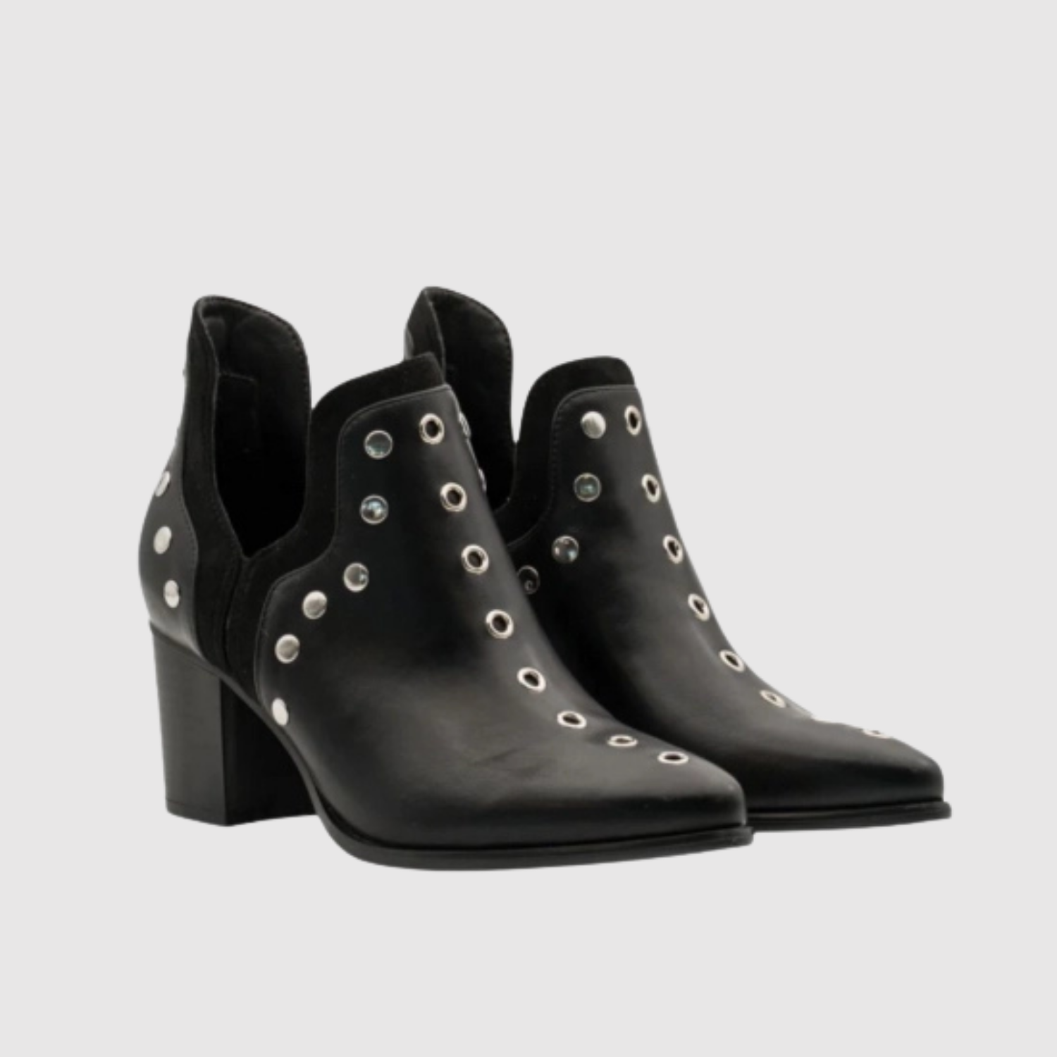 Тези боти съчетават декоративни метални детайли с модерен силует и стабилен блоков ток, което създава мощен и уверено изглеждащ вид. Удобното прилягане ги прави идеални за ежедневна и вечерна употреба – перфектни за теб, която искаш да се открояваш.