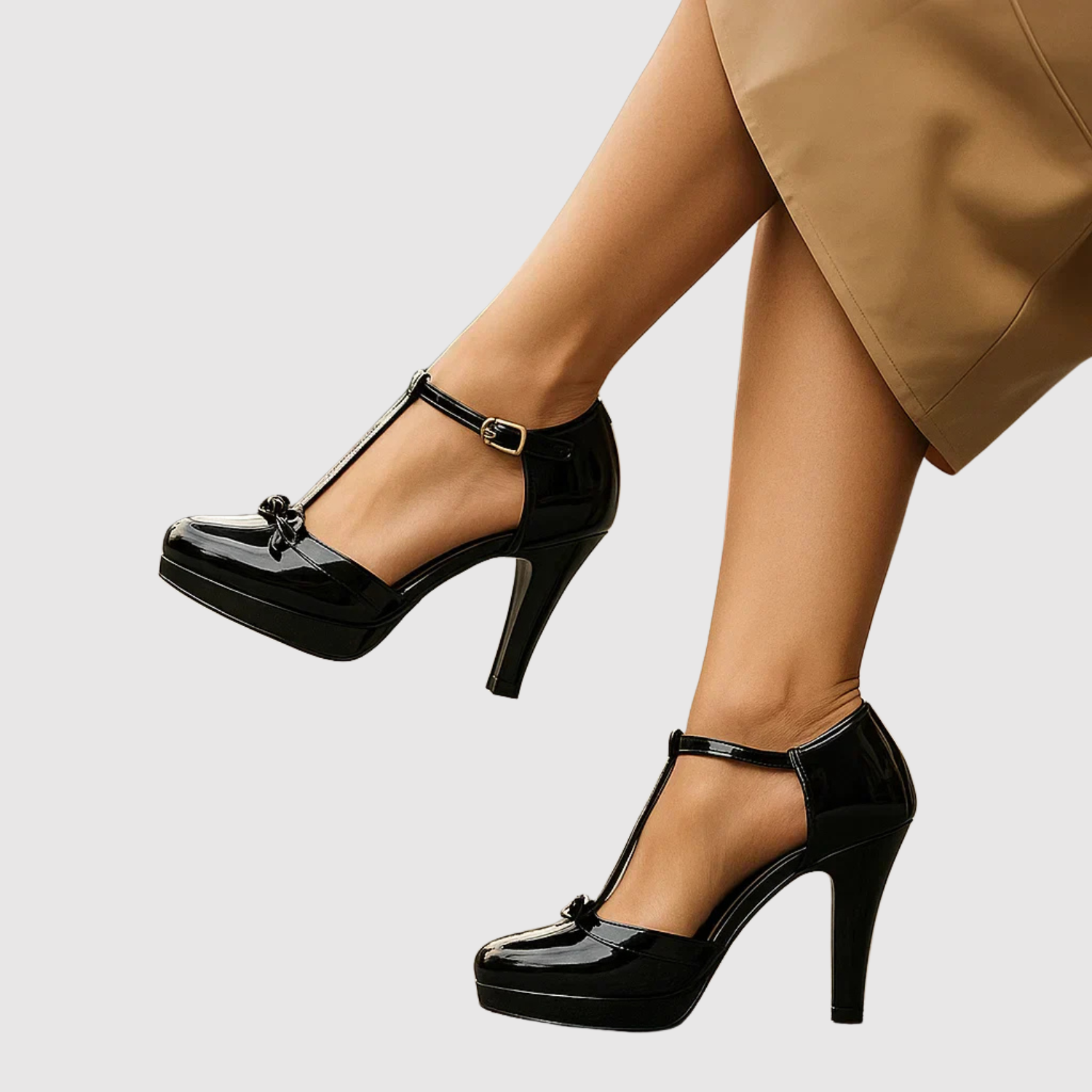 Тези токчета комбинират класически дизайн с модерен акцент. Меката контраст между "Бела Розова" и черно придава изискан вид, докато малката панделка отпред добавя нотка на грация.