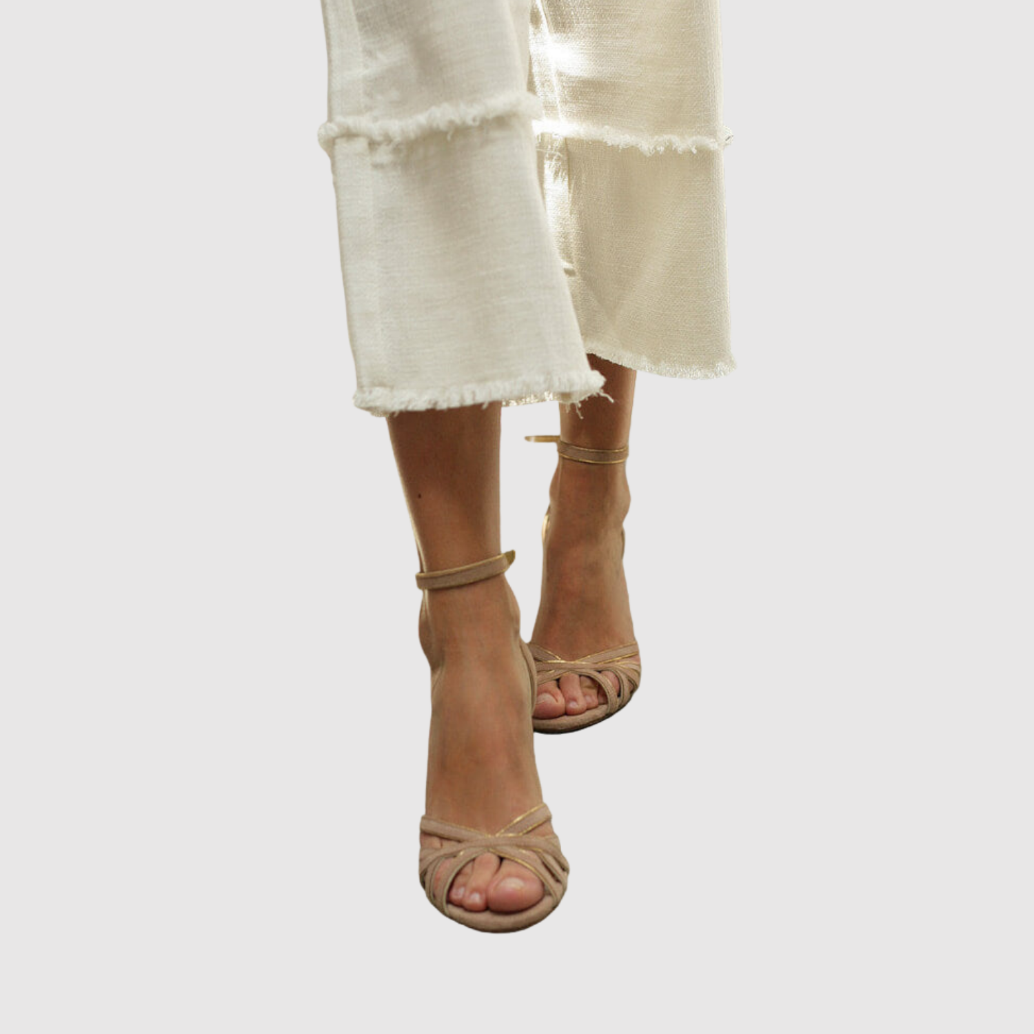 Тънкият ремък около глезена осигурява стабилност, докато елегантният ток придава височина и комфорт при ходене.
