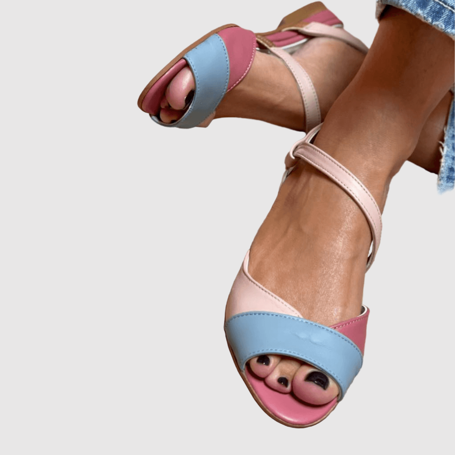 Тези сандали съчетават модерен дизайн с женствени детайли. Меките ленти в контрастни цветове придават уникален вид, докато удобната подметка ги прави идеални както за всекидневието, така и за празници.