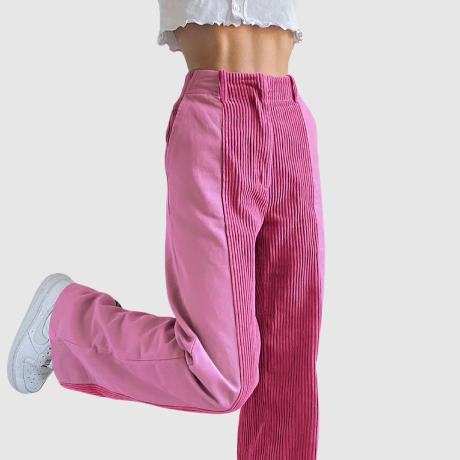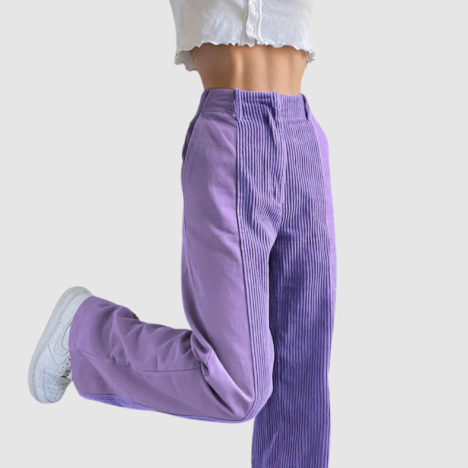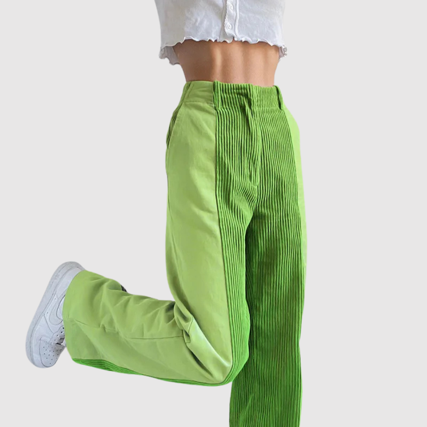 Тези вельветови панталони предлагат модерен вид с комфортна кройка. Мекото материал осигурява удобство, докато силните цветове добавят модерен акцент.
