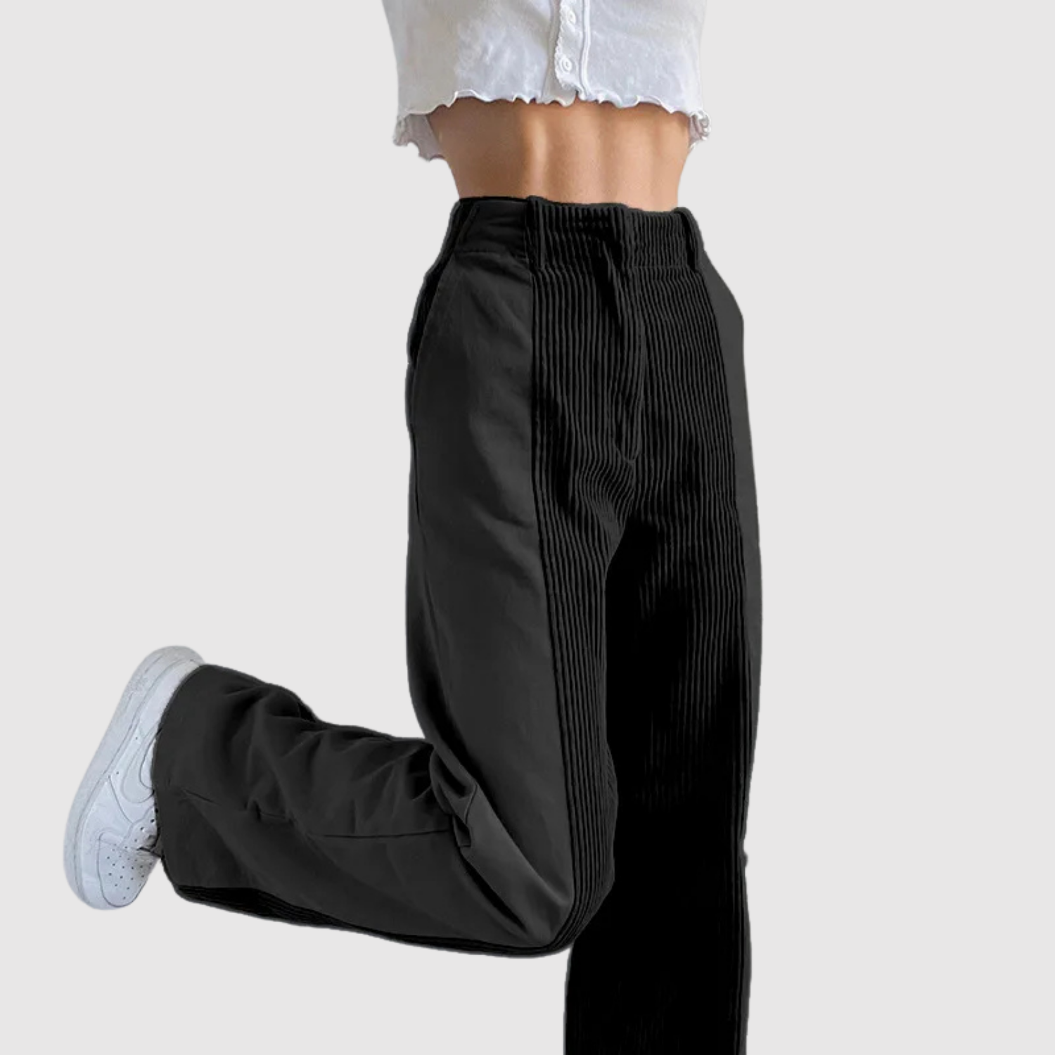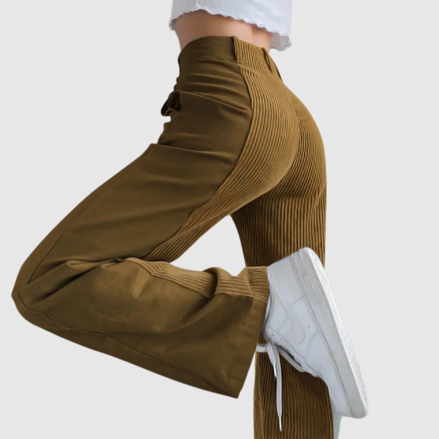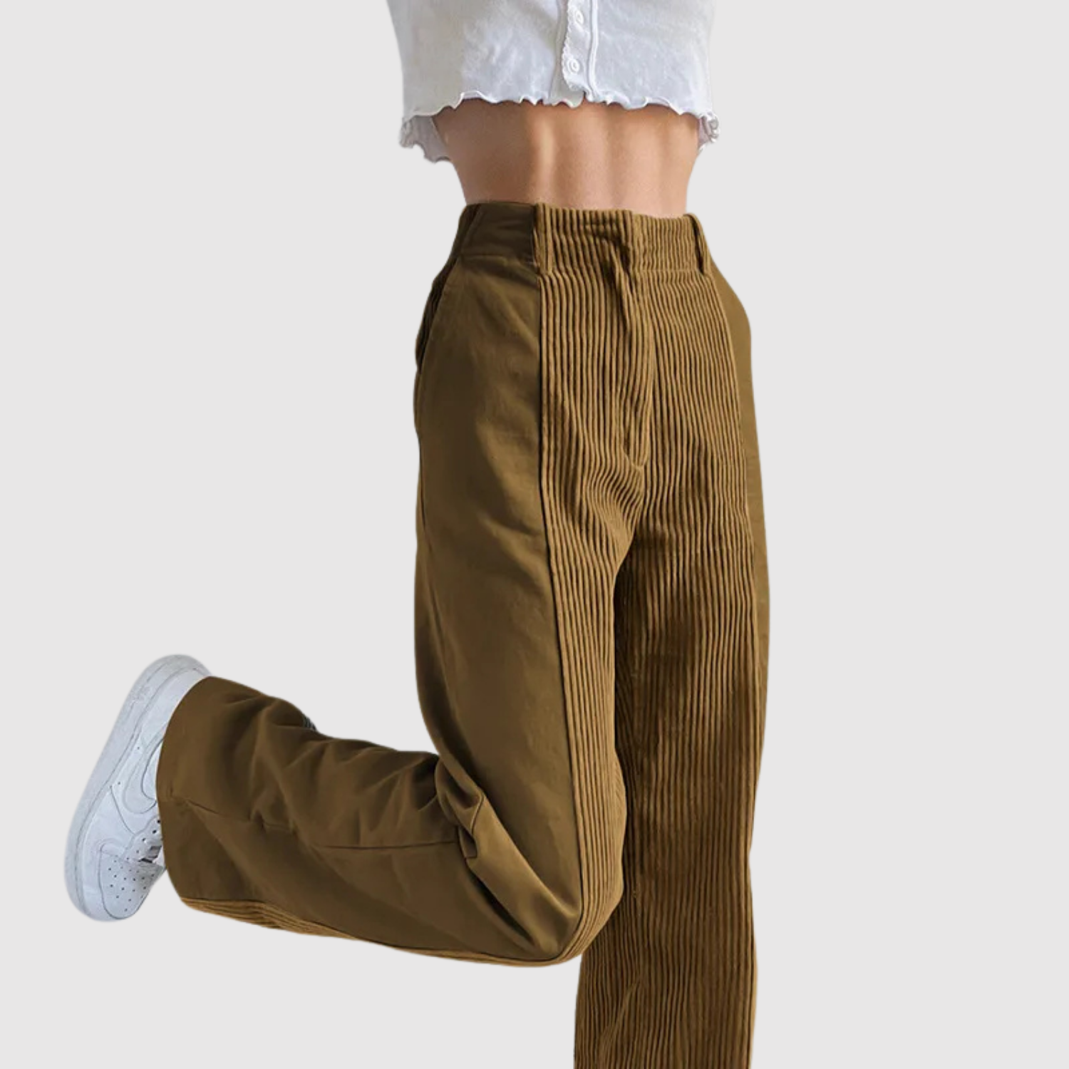 Тези вельветови панталони предлагат модерен вид с комфортна кройка. Мекото материал осигурява удобство, докато силните цветове добавят модерен акцент.