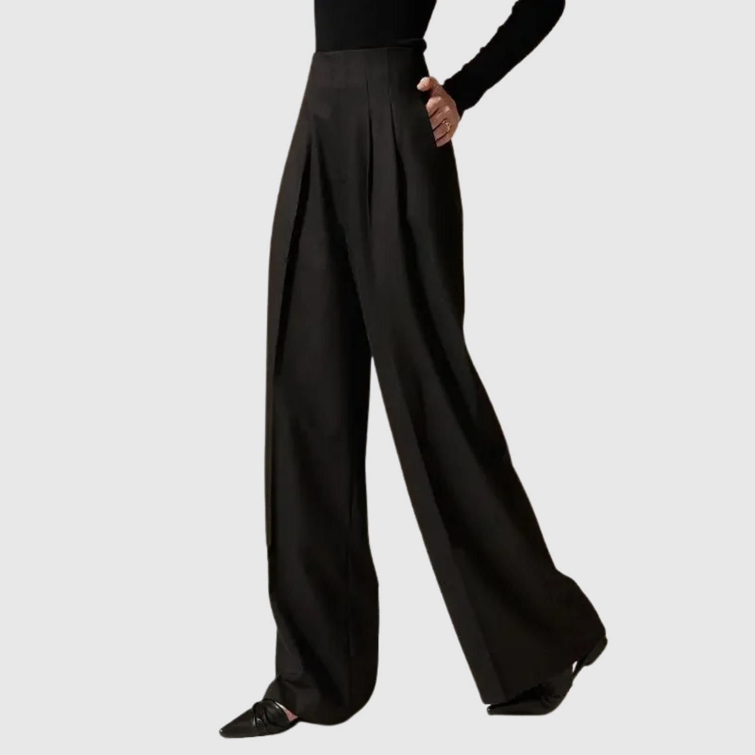 Тези широки панталони съчетават простота и комфорт в изискан дизайн. Перфектни за работа и неформални поводи.