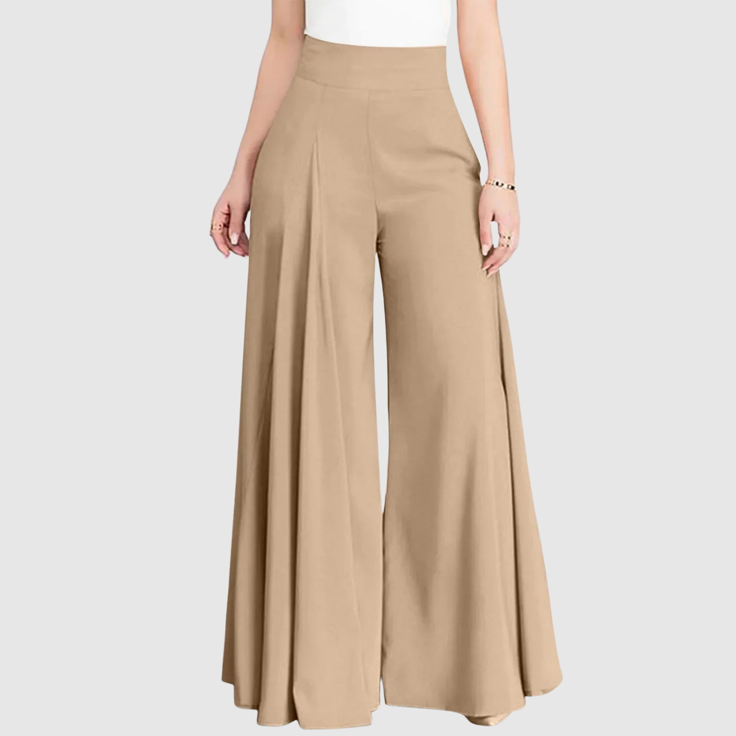 Тези широки панталони са изработени от лек материал, който осигурява свобода на движение и стилно излъчване. Перфектни за горещи дни или за небрежен шик вид.