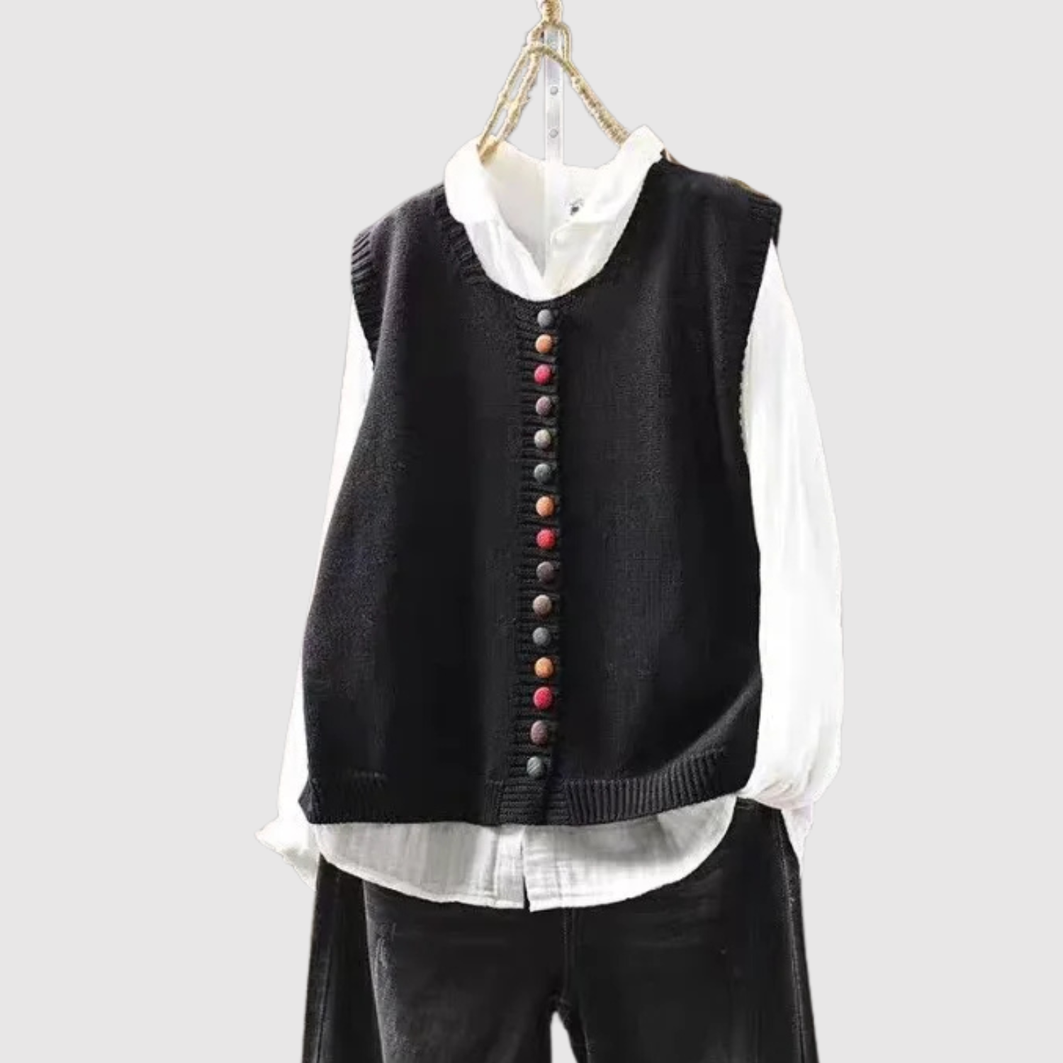 Този кардиган съчетава бохемски вдъхновен дизайн с класически детайли. Декоративните копчета и свободната кройка придават женствен и небрежен вид, идеален за всекидневието и специални поводи.