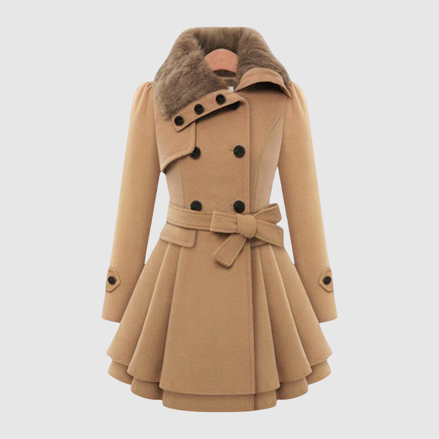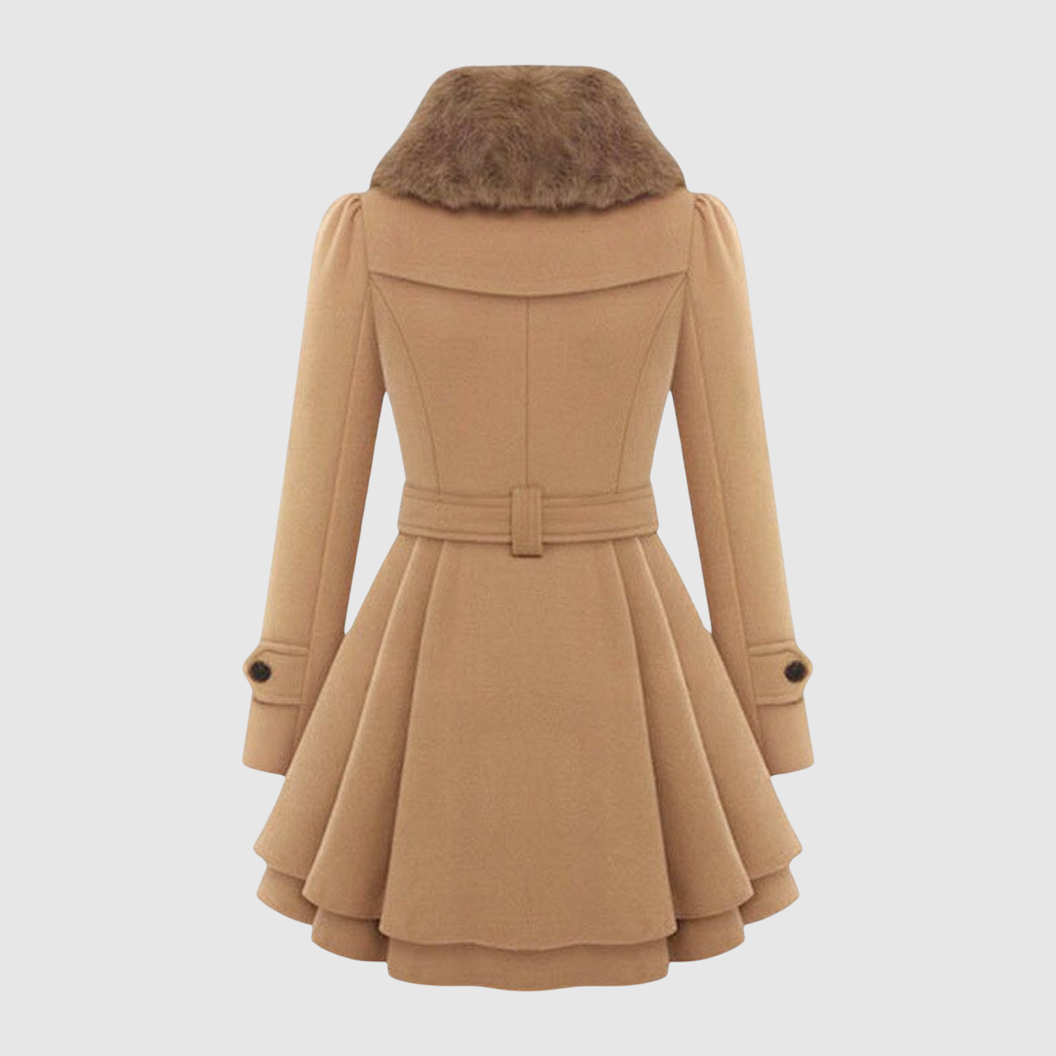 Елена – Вълнено палто с А-образен силует и кожена яка
