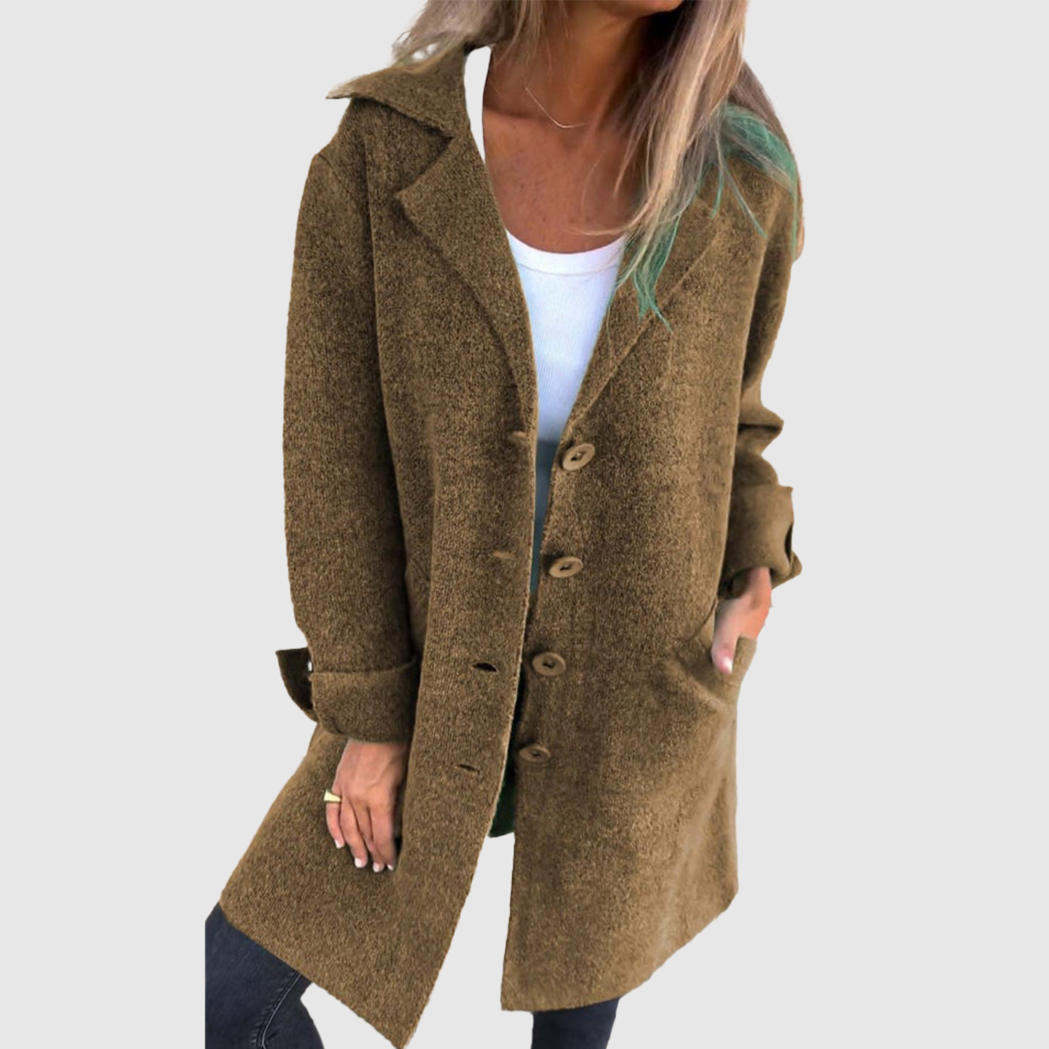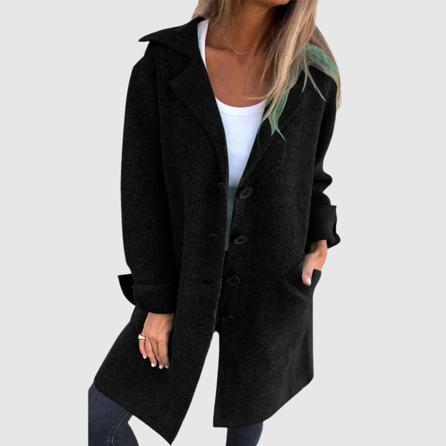 Това палто комбинира комфорт, топлина и стилен дизайн, перфектно за ежедневието и по-хладни дни. С дългия си кройка, практични джобове и класическо закопчаване с копчета, то е едновременно функционално и модерно. Идеално за всичко - от работа до неформални разходки в града.