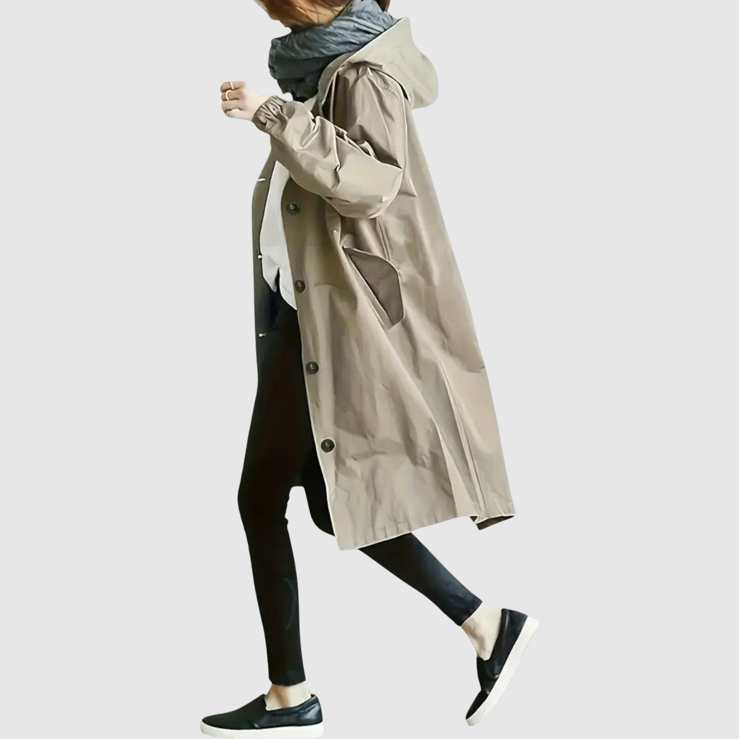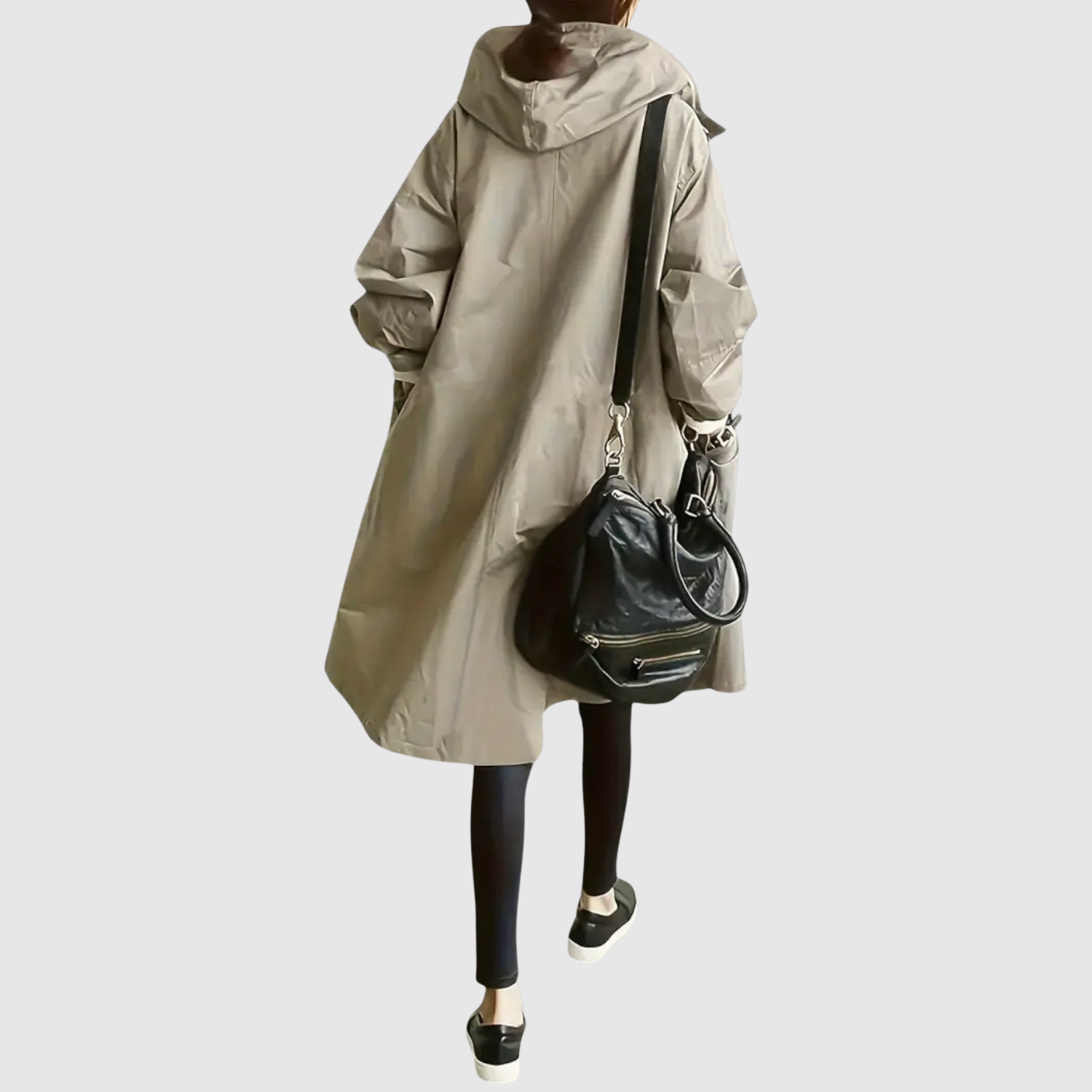 Това дълго яке с качулка е проектирано да комбинира функционалност и стил. С лекото си материал, свободен кройка и модерни детайли, то е перфектно за преходни периоди. Може да се носи както като практично ежедневно яке, така и като шикозно многослойно облекло.