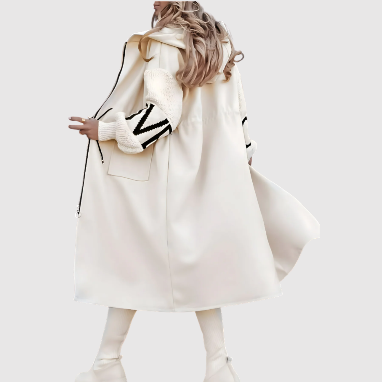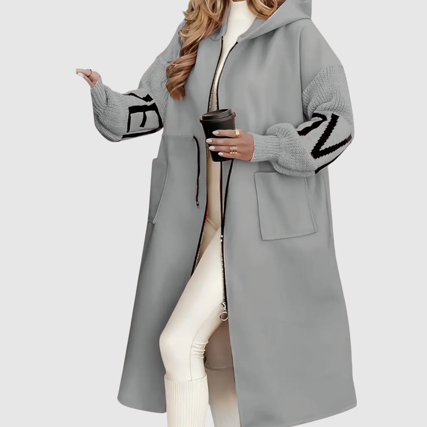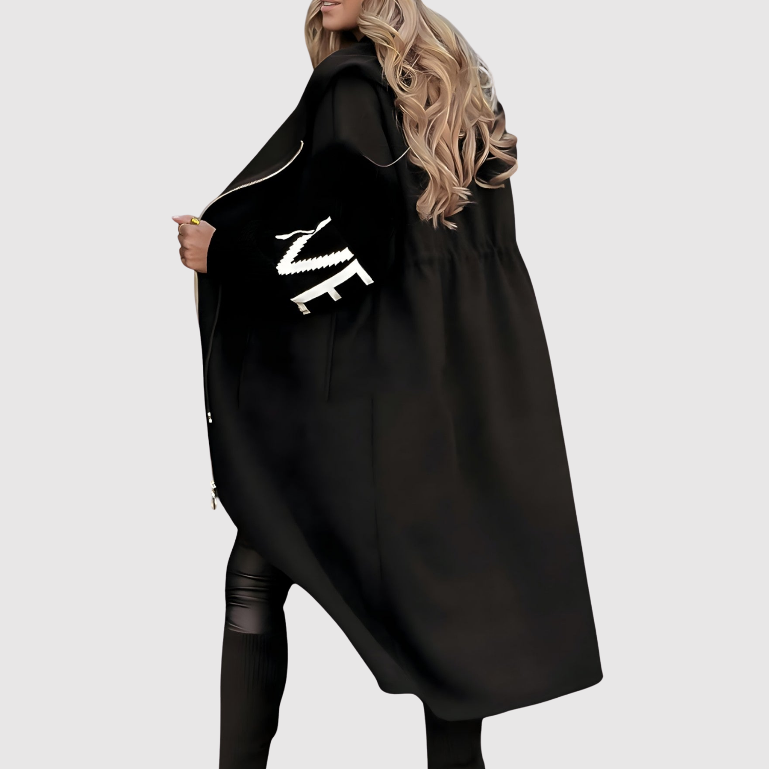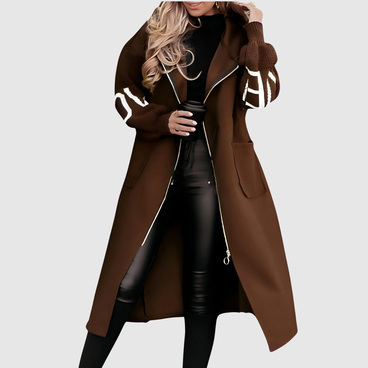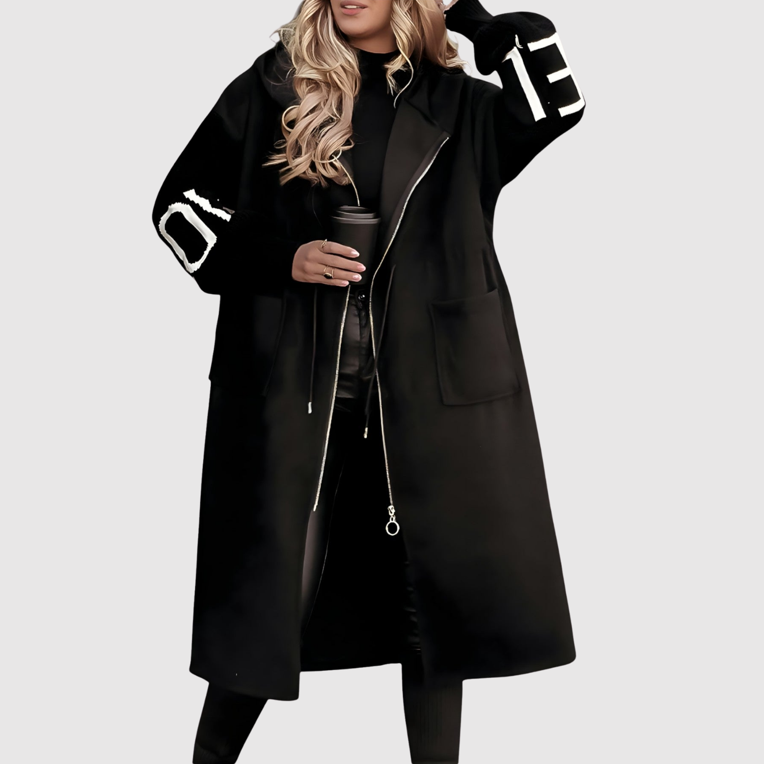 Това дълго палто е проектирано да комбинира лукс и функционалност. Мекото козино подложка осигурява максимална топлина, докато свободният кройка и модерните детайли го правят универсален избор, както за ежедневието, така и за по-елегантни поводи.