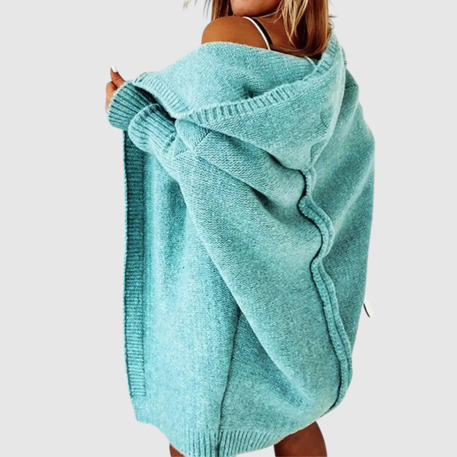 Мек и топъл кардиган с качулка, идеален за хладни дни. Свободният кройка и широките ръкави придават модерен и удобен вид, който лесно може да се комбинира както у дома, така и навън.