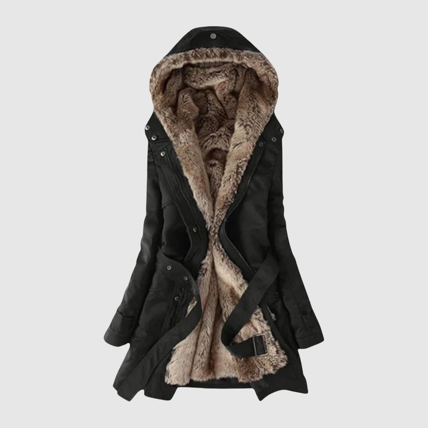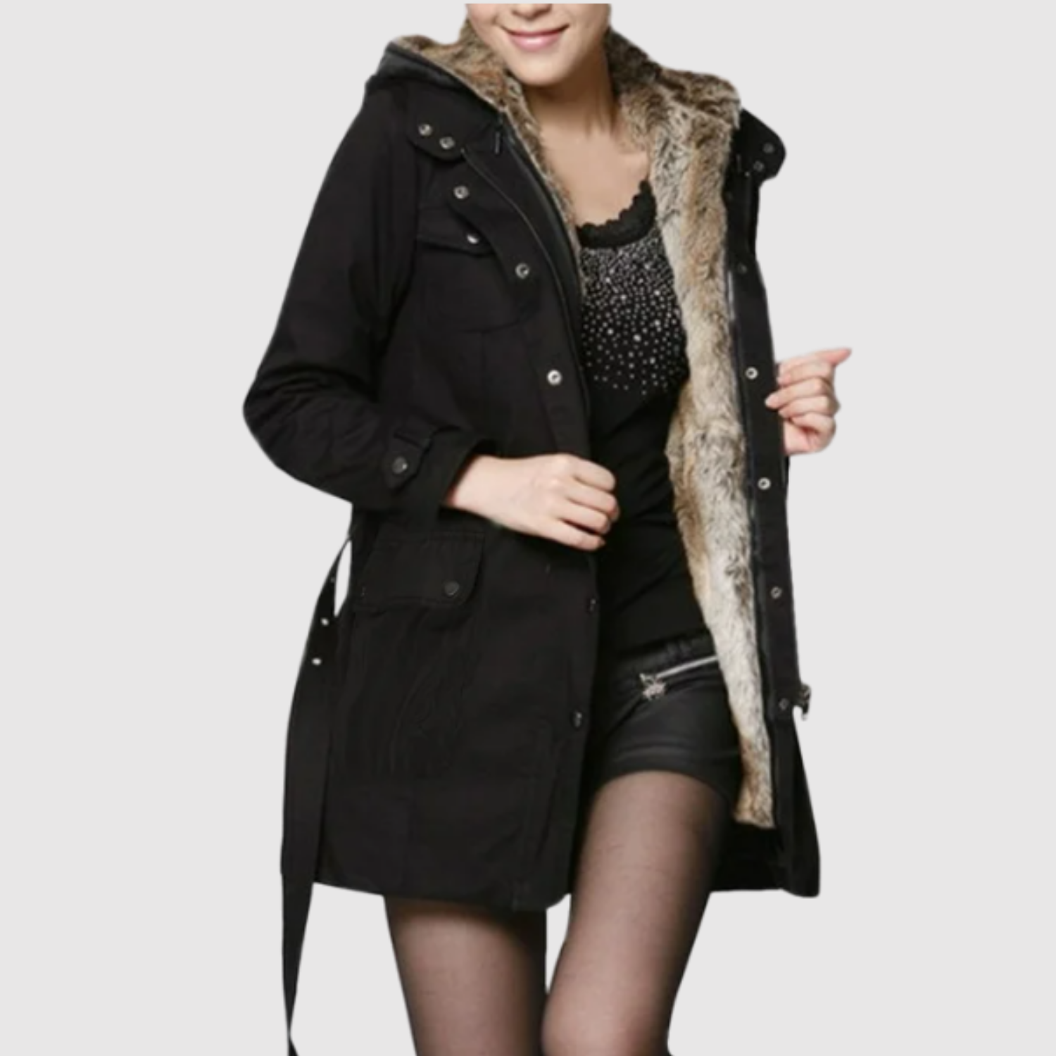 Тази парка е с допълнителна мека изкуствена козина от вътрешната страна – от качулката до дъното. Тя предпазва от студ, без да прави компромис със стила, и има регулируем шнур за перфектно прилягане.