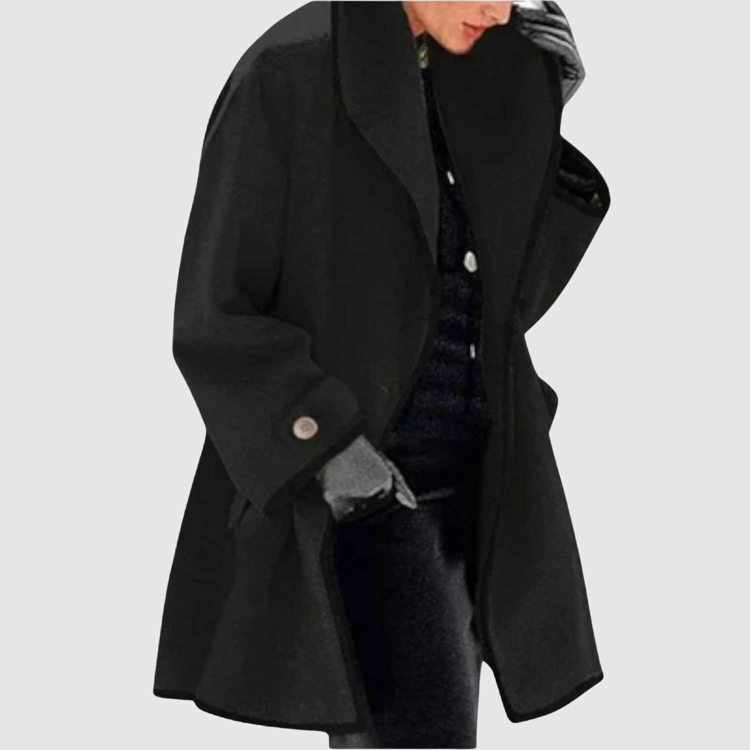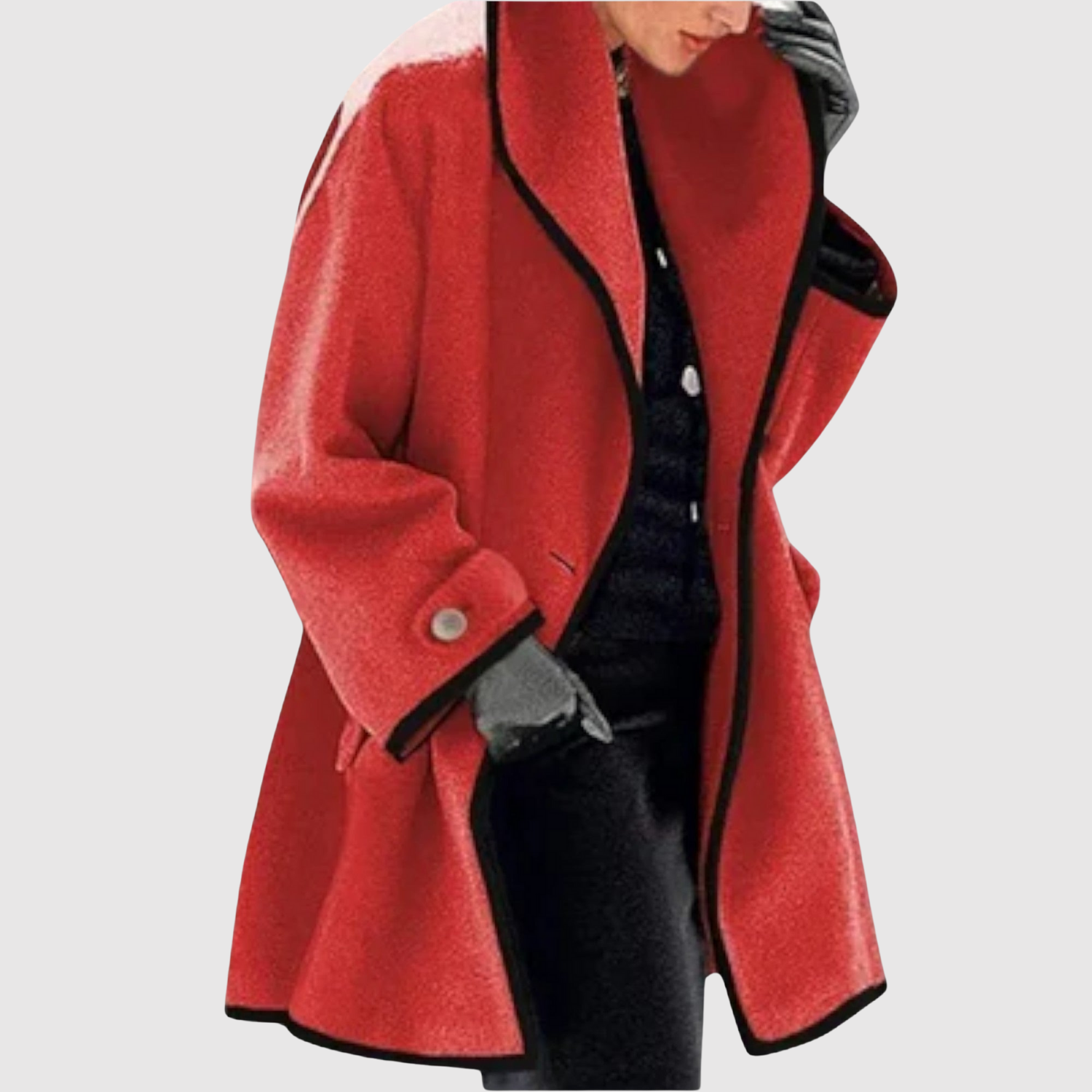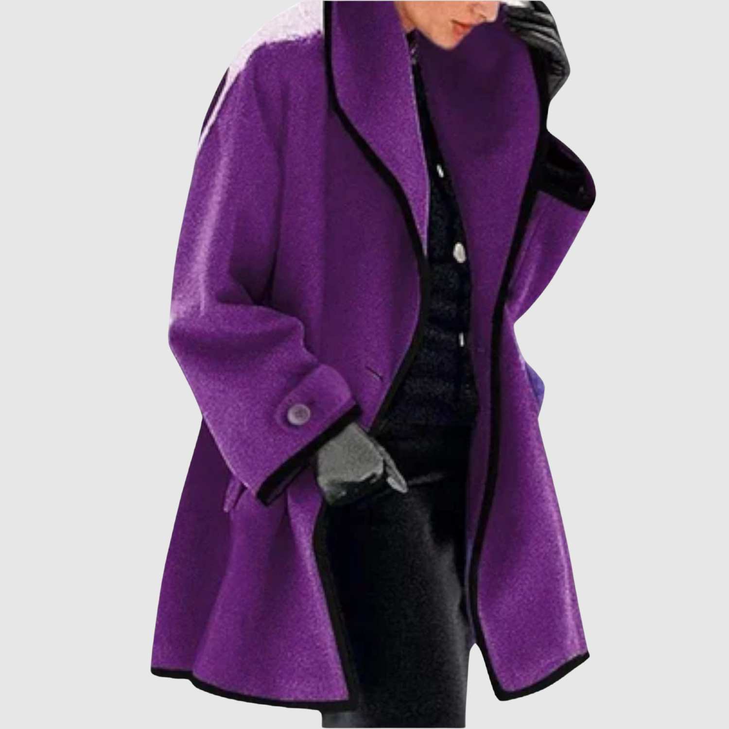 Това палто комбинира изискан силует с модерни контрастни детайли. То е както практично за студените дни, така и достатъчно елегантно, за да повдигне всяко облекло.