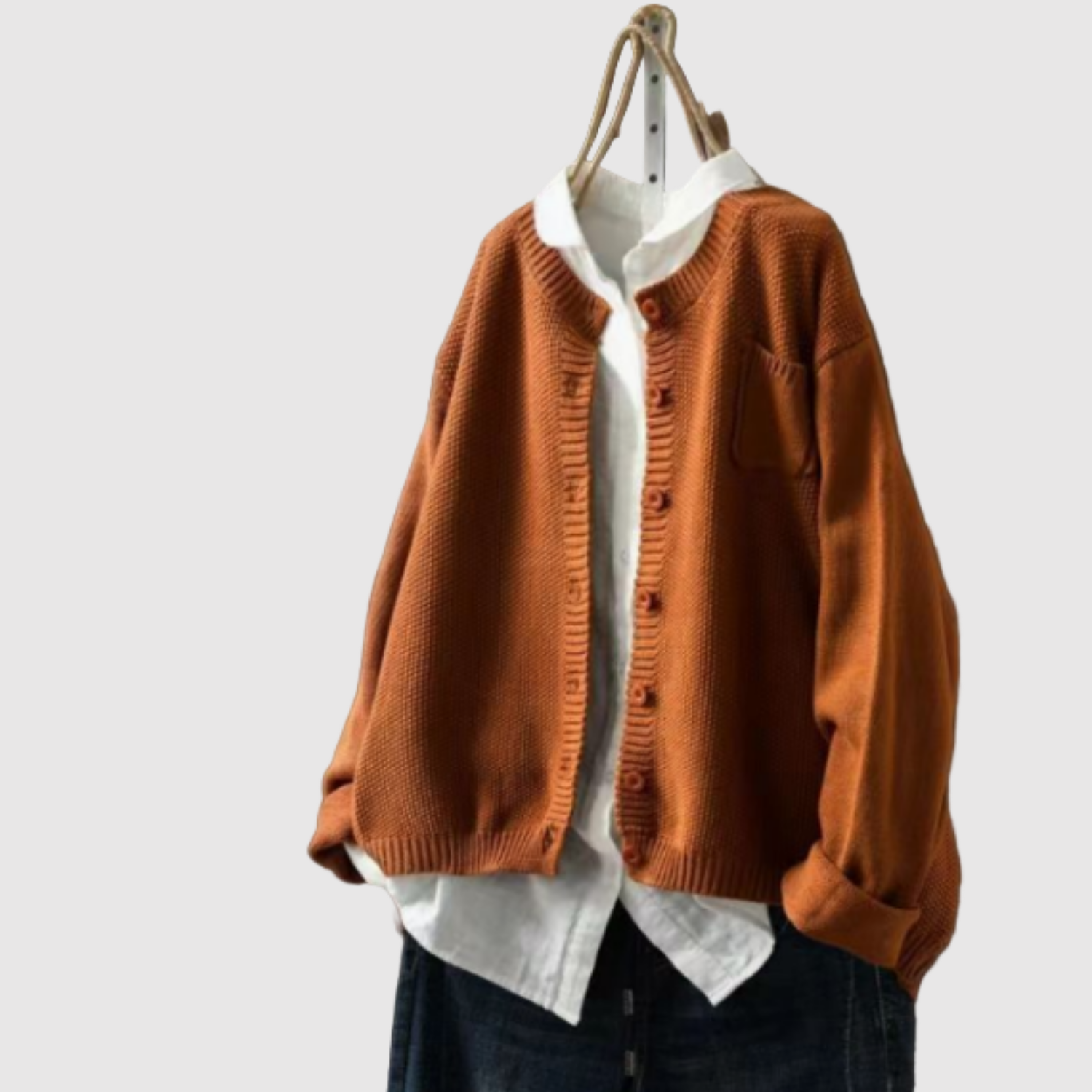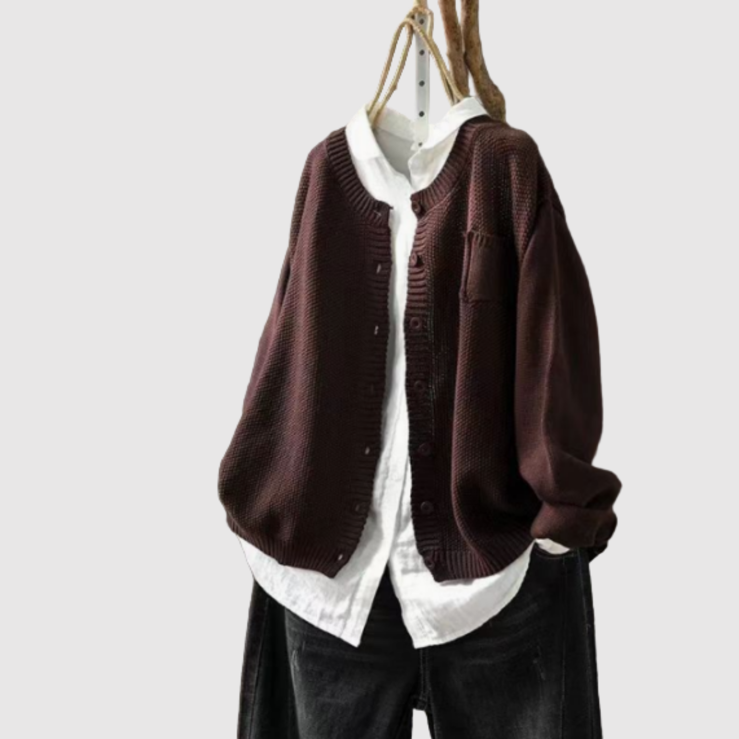 Вечен кардиган, който комбинира комфорт и простота. Изработен от мека памучна смес, идеален за стилизиране на слоеве през цялата година. С класически копчета и свободна кройка, той е задължителен елемент в гардероба на всеки.