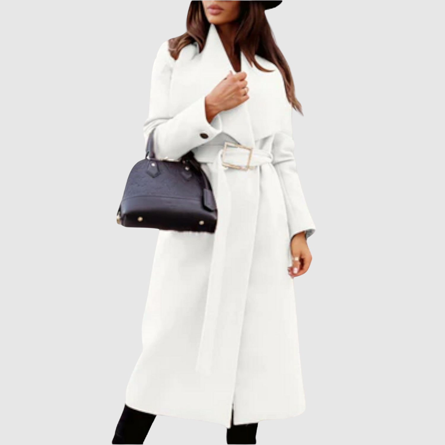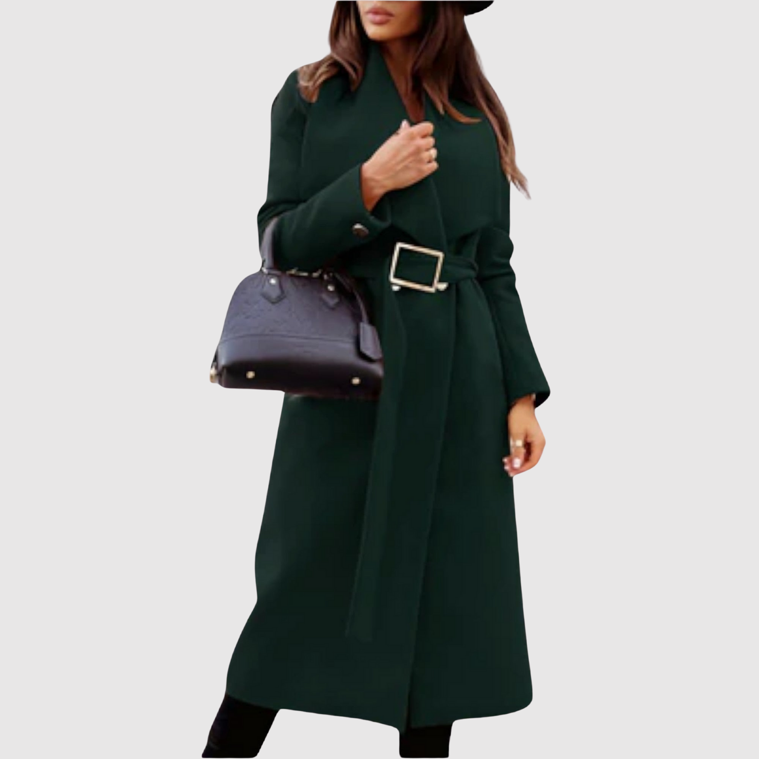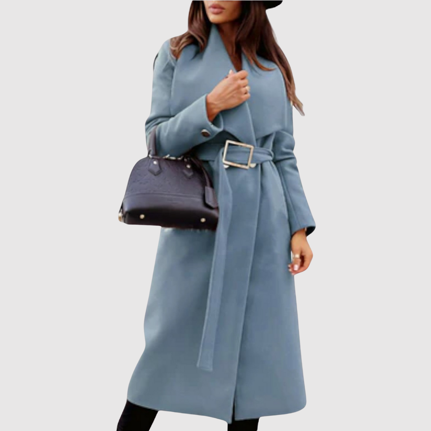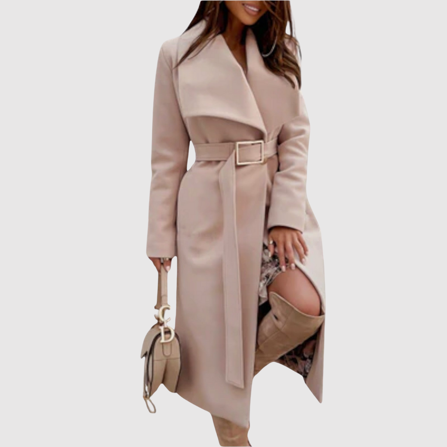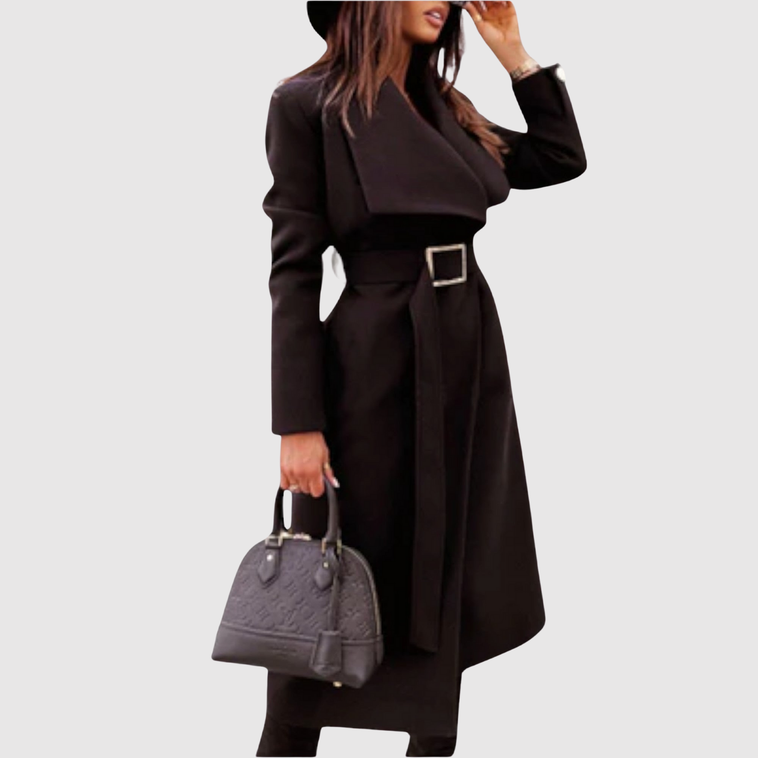 Това палто комбинира класически силует с модерни детайли. Широкият ревер, коланът на талията и чистите линии го правят сигурен избор за стилен зимен гардероб.
