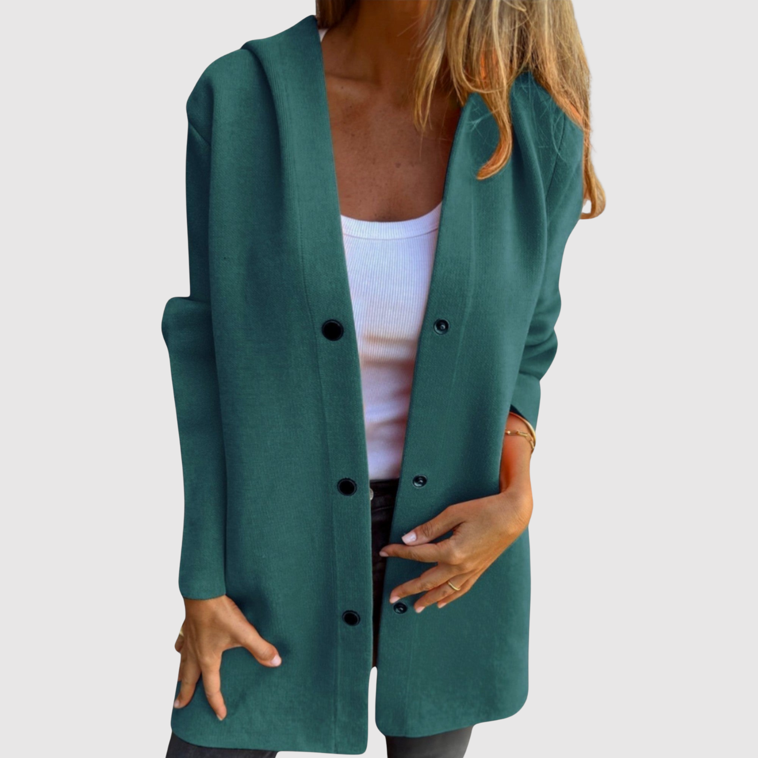Тази лека якета с трикотажен вид е универсален избор за всеки ден. Със своето меко материал, свободна кройка и класическо закопчаване с копчета, тя придава неусложнен, но стилен вид. Идеална за преходни периоди или като допълнителен слой в хладни вечери.