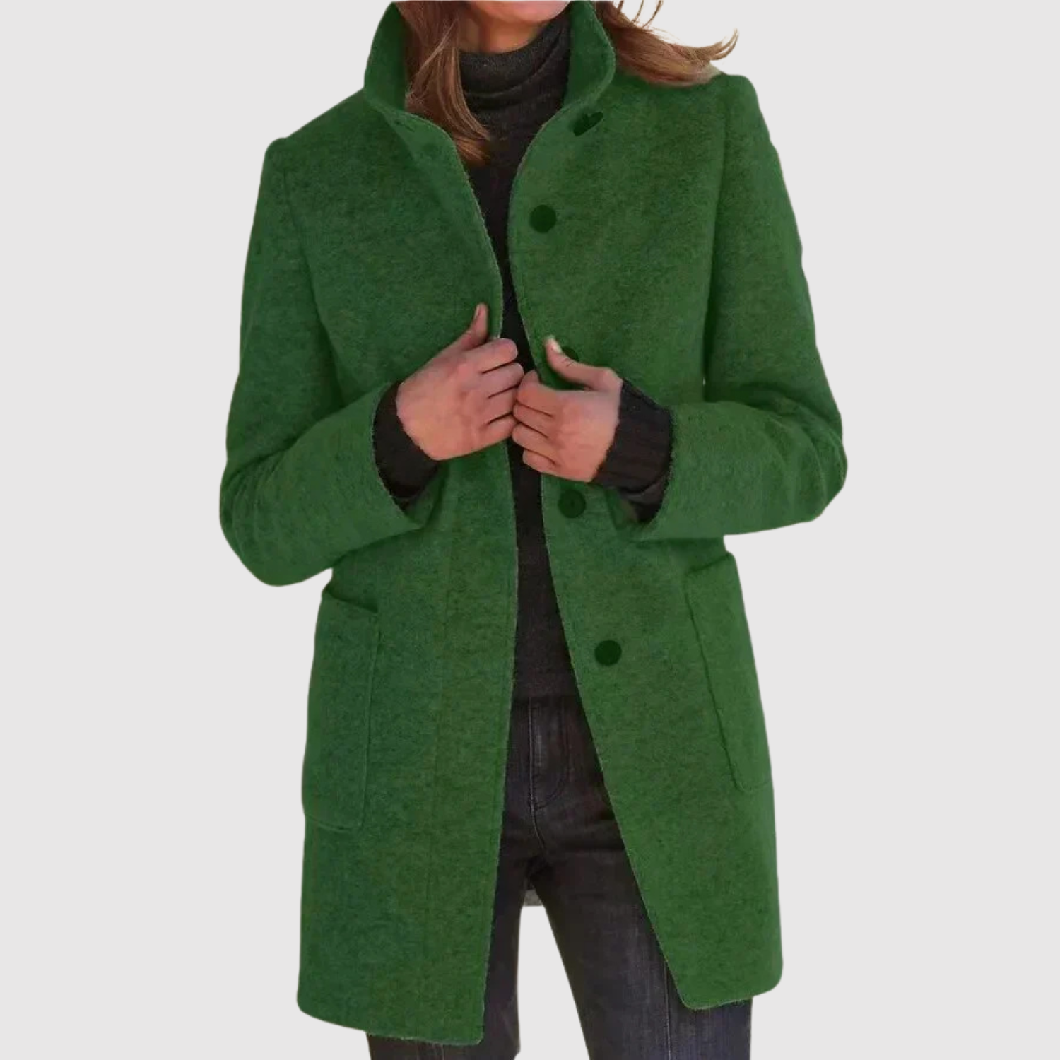 Тази дамска палто комбинира класически силует с модерна простота. Мекото вълнено излъчване осигурява топлина и комфорт, докато елегантната кройка подчертава силуета, без да губи свободата на движение. Перфектно за ежедневието и формални поводи – палто, на което можете да разчитате сезон след сезон.