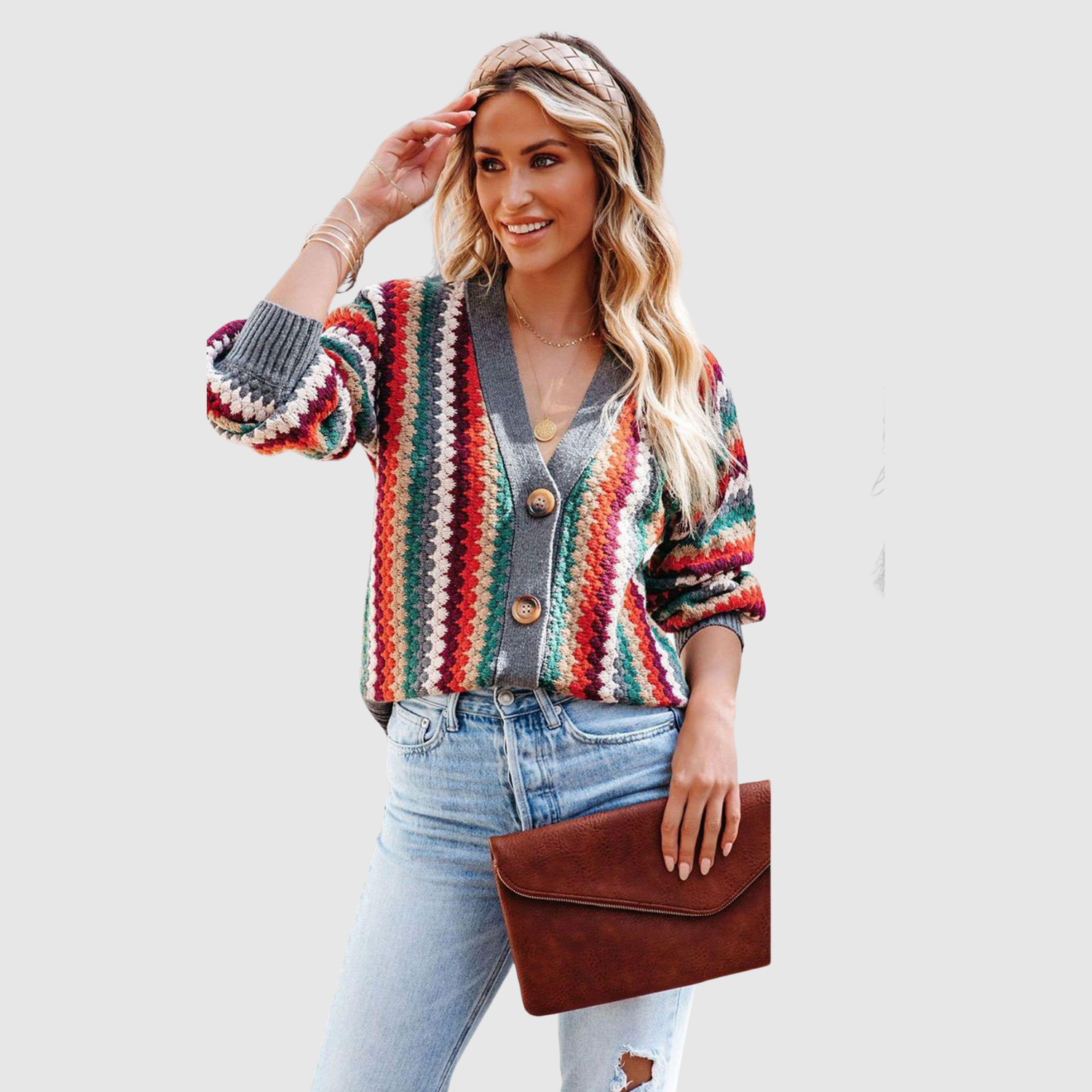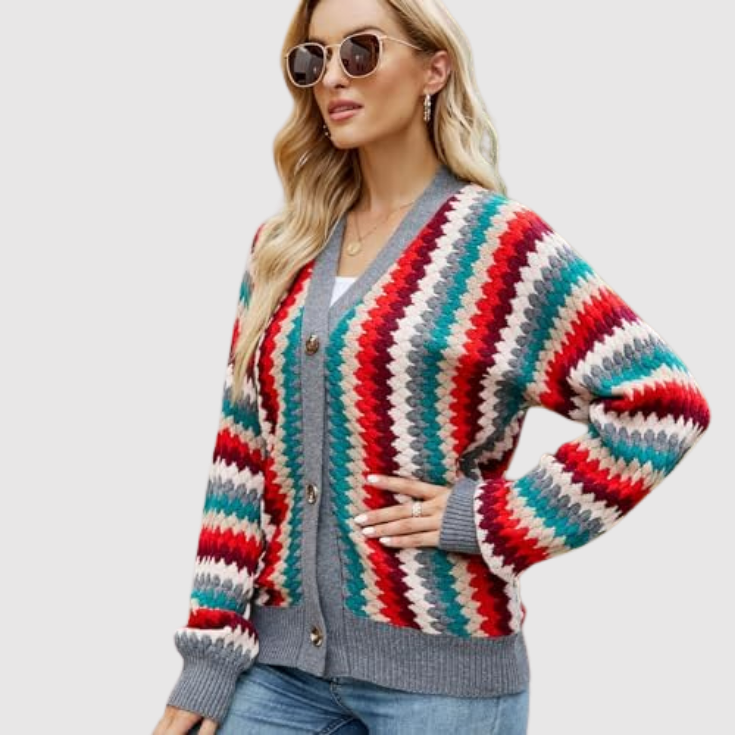Елена – Цветен плетен кардиган с копчета