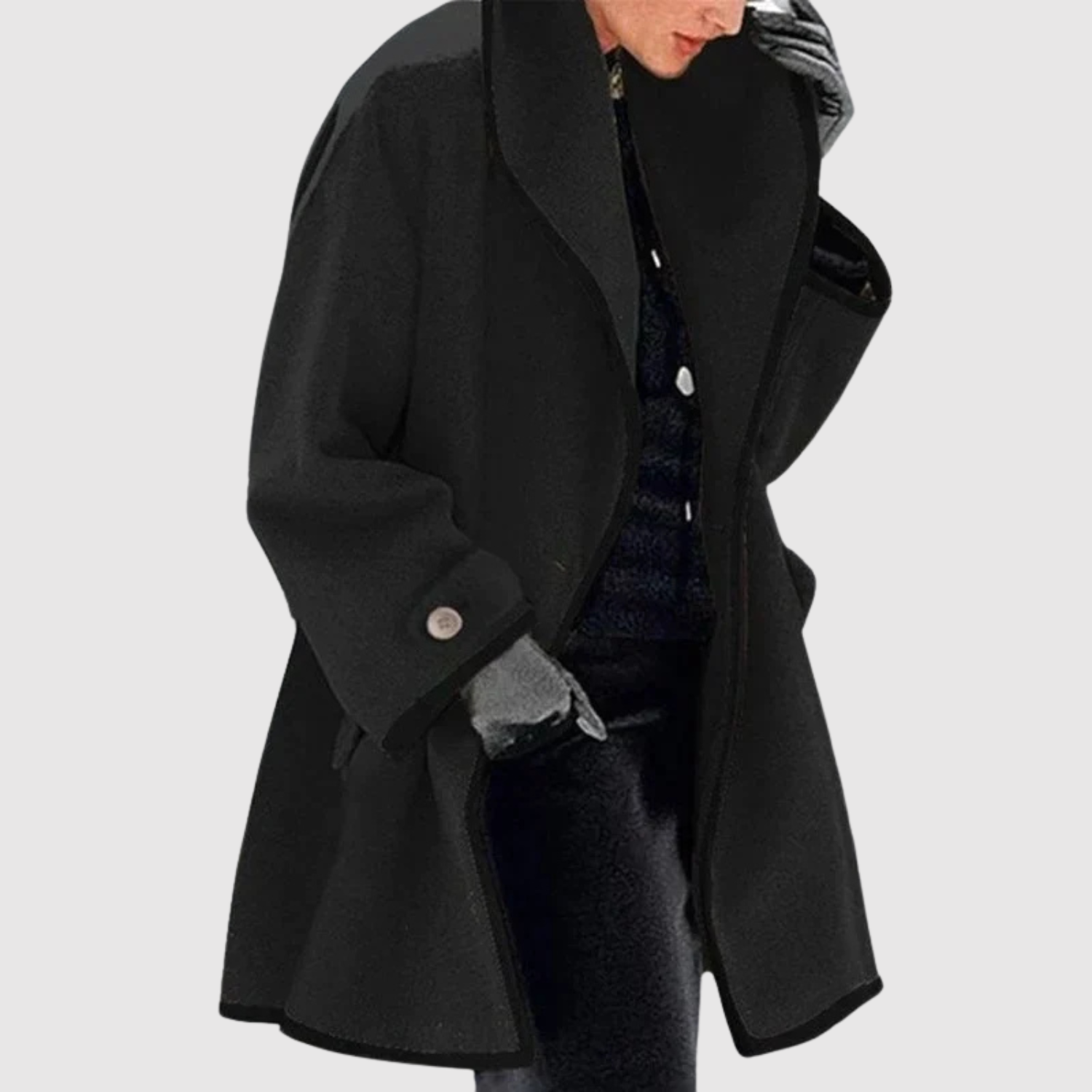 Елена - Oversize дамска палто с контрастни ръбове