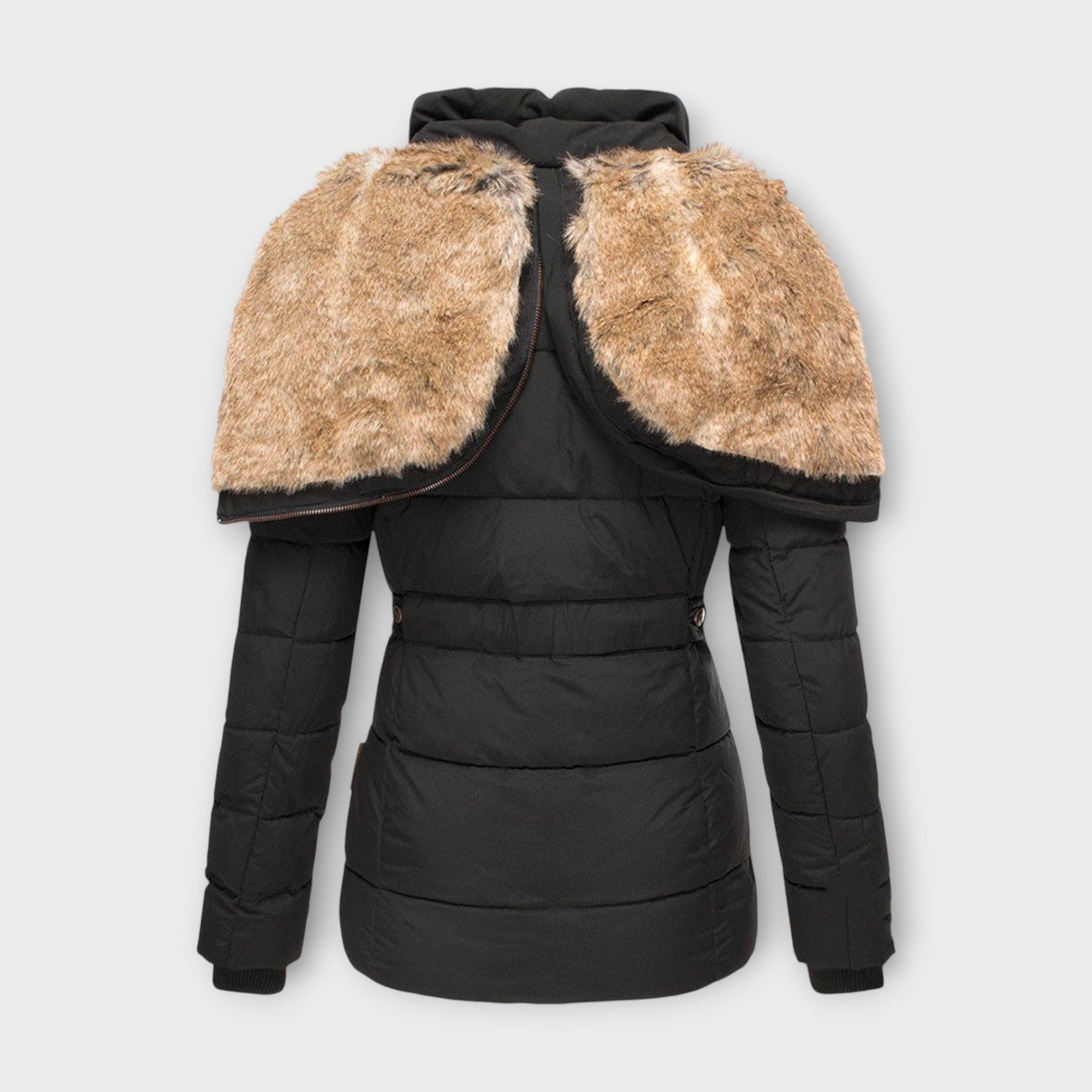 Stilīgs: Polsterēts dizains ar noņemamu kažokādas apkakli piešķir izsmalcinātību.