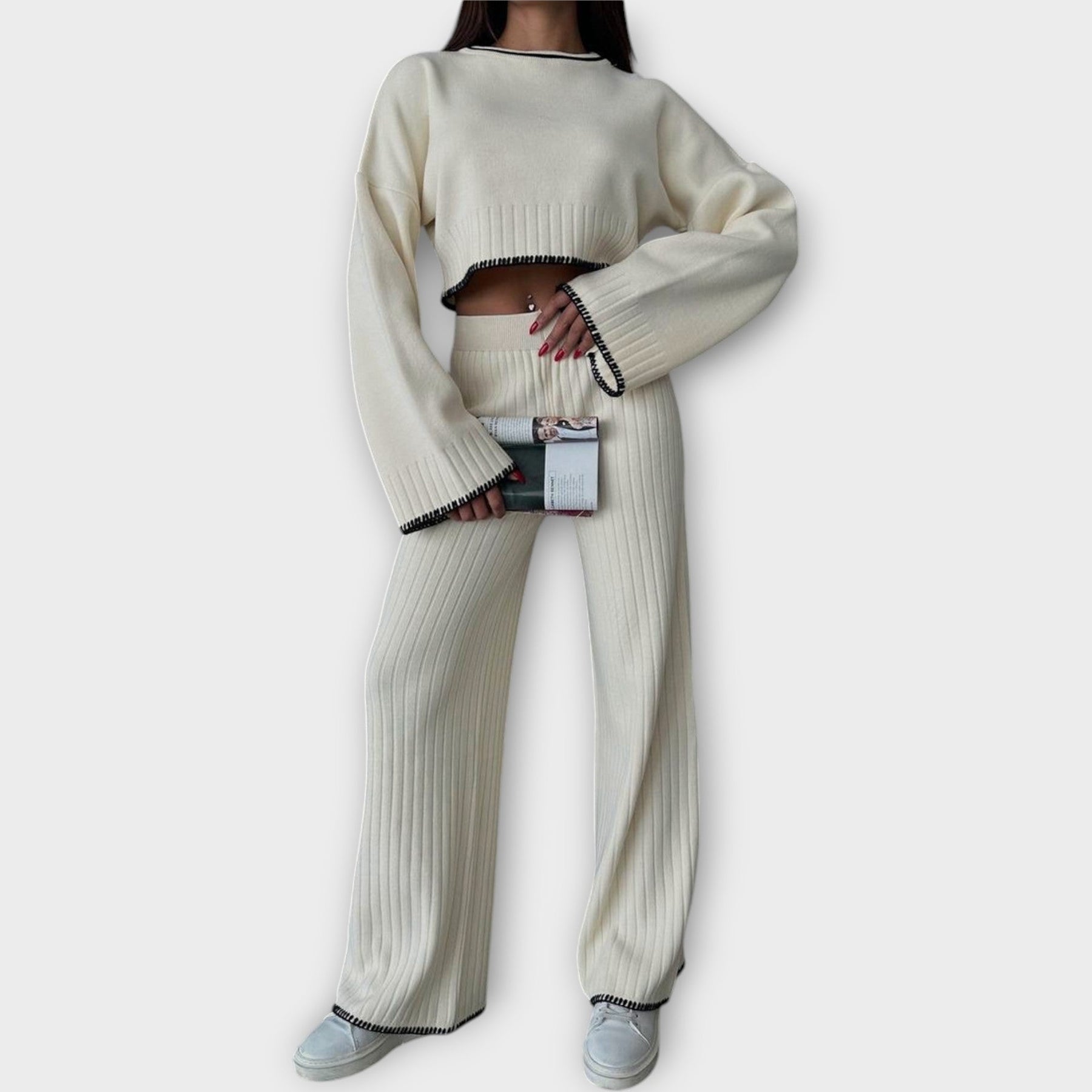 Zane - Adīta komplekts ar īsu džemperi un izsmalcinātām detaļām